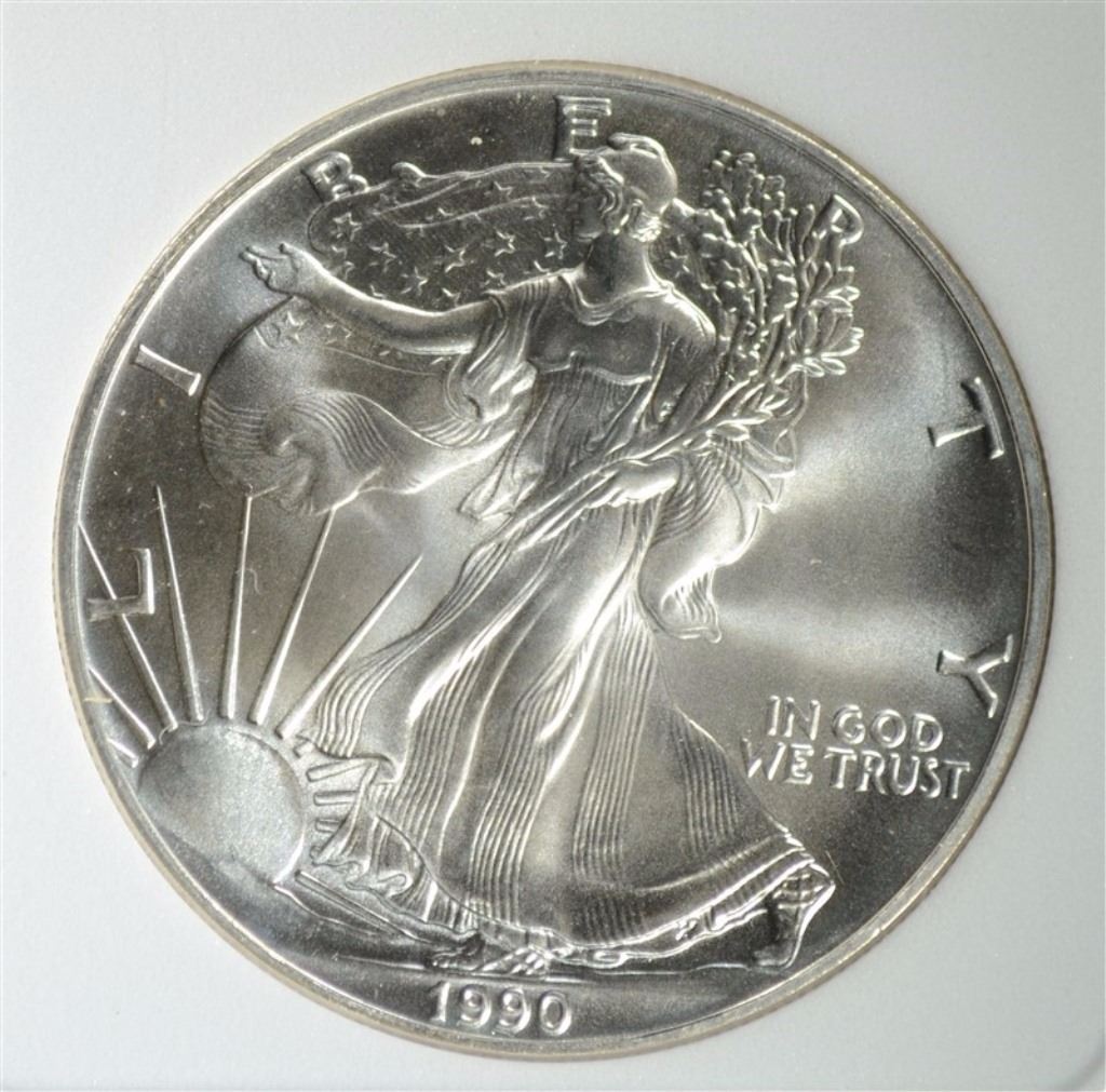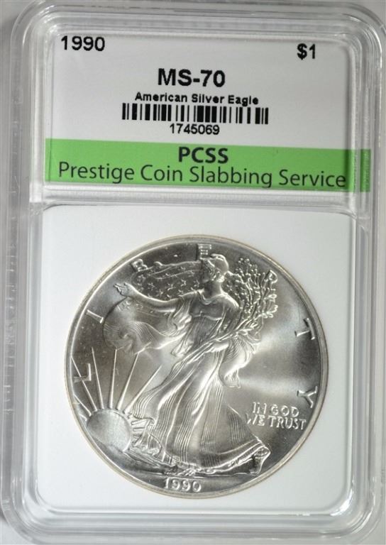 1990 AMERICAN SILVER EAGLE, PCSS PERFECT GEM BU ESTIMATE $1100 - $1250.