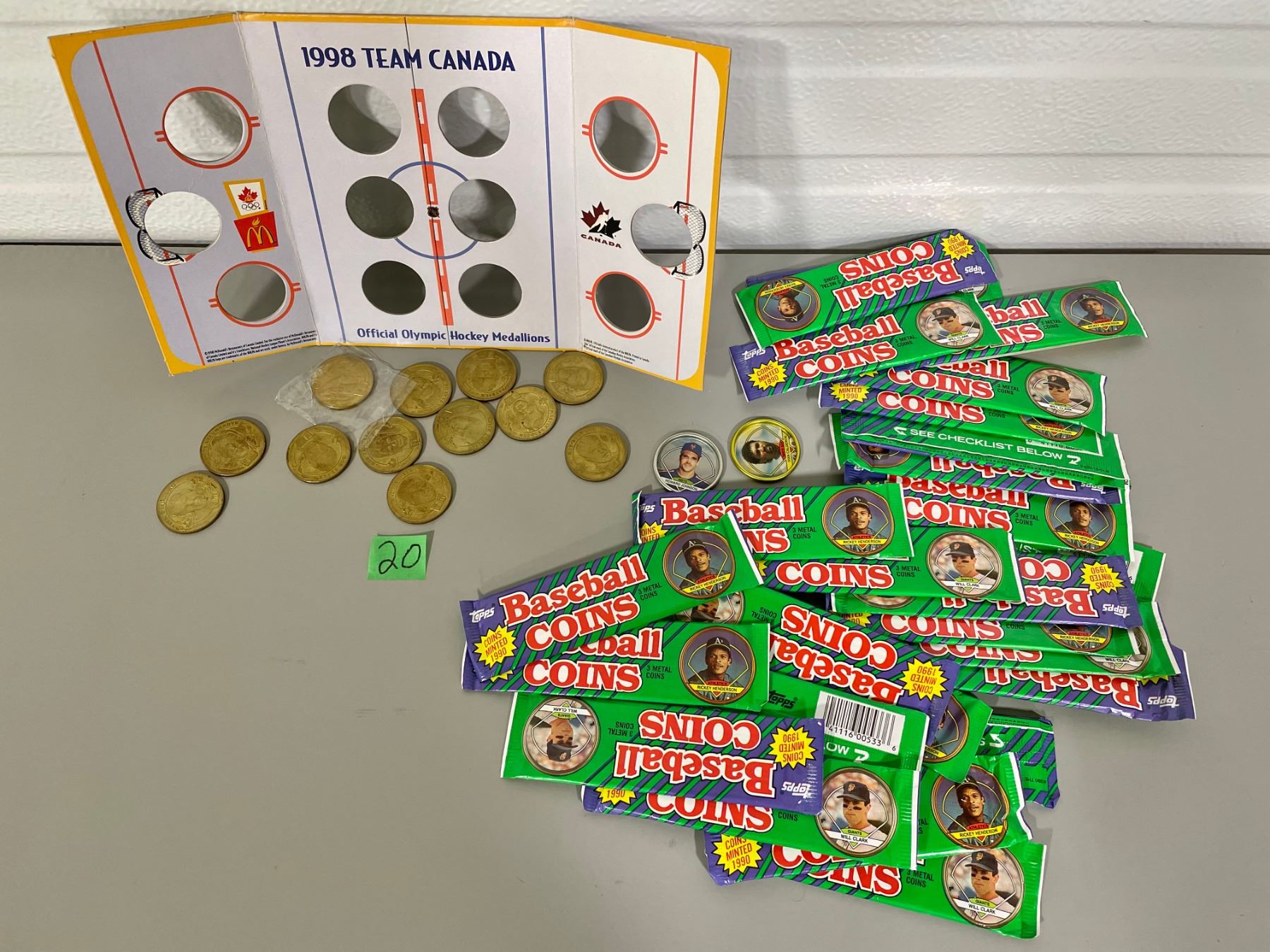 1990 BASEBALL COLLECTIBLE COINS & 1998 TEAM CANADA MEDALLIONS