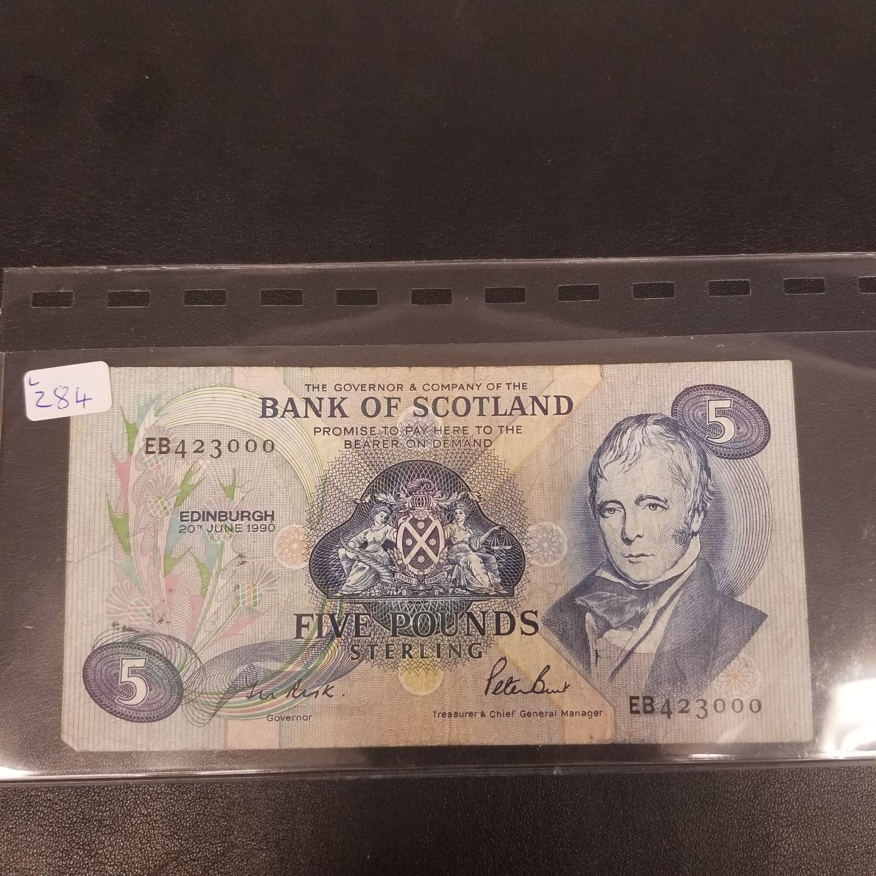 1990 Bank of Scotland 5 pound note Chritoph Gartner