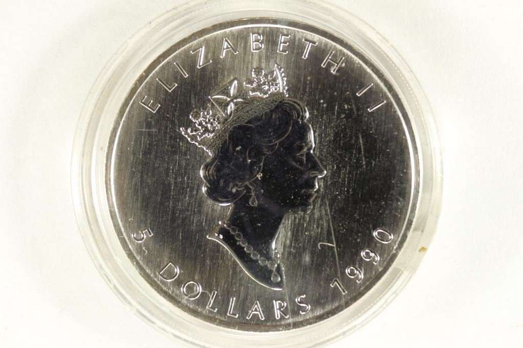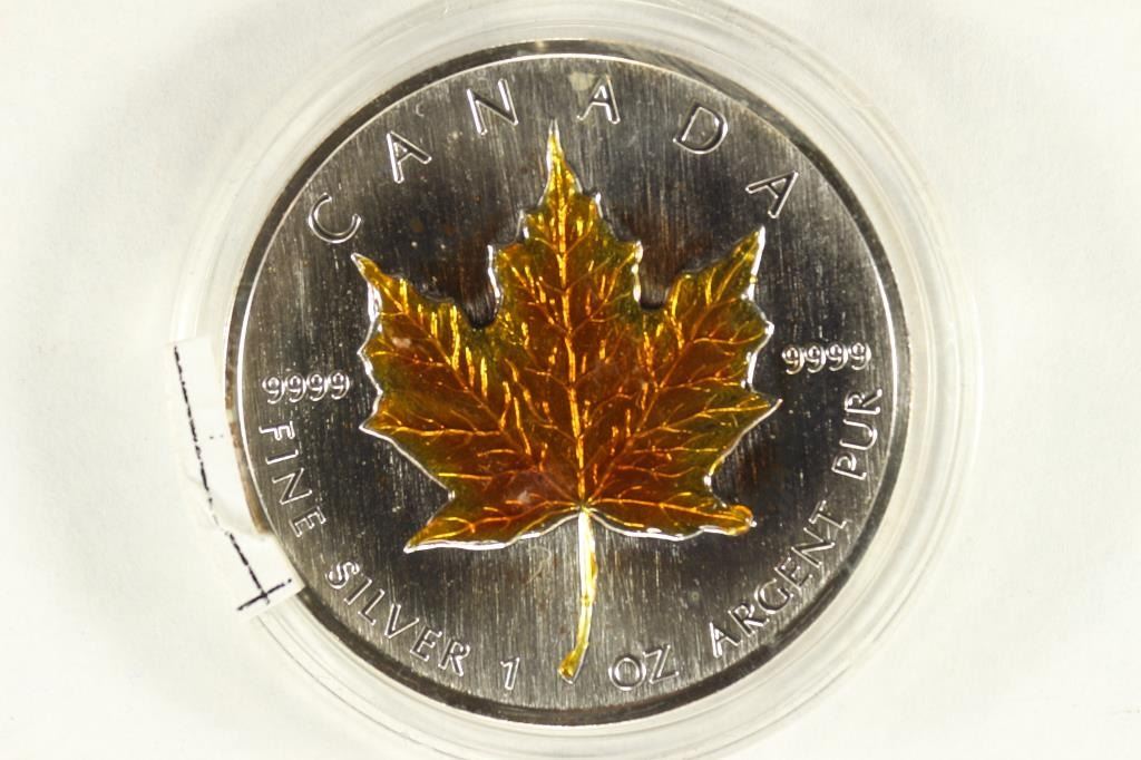 1990 CANADA SILVER $5 COLORIZED MAPLE LEAF