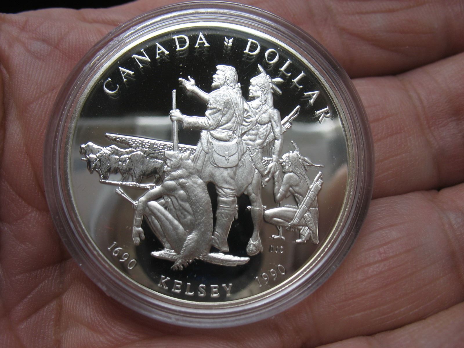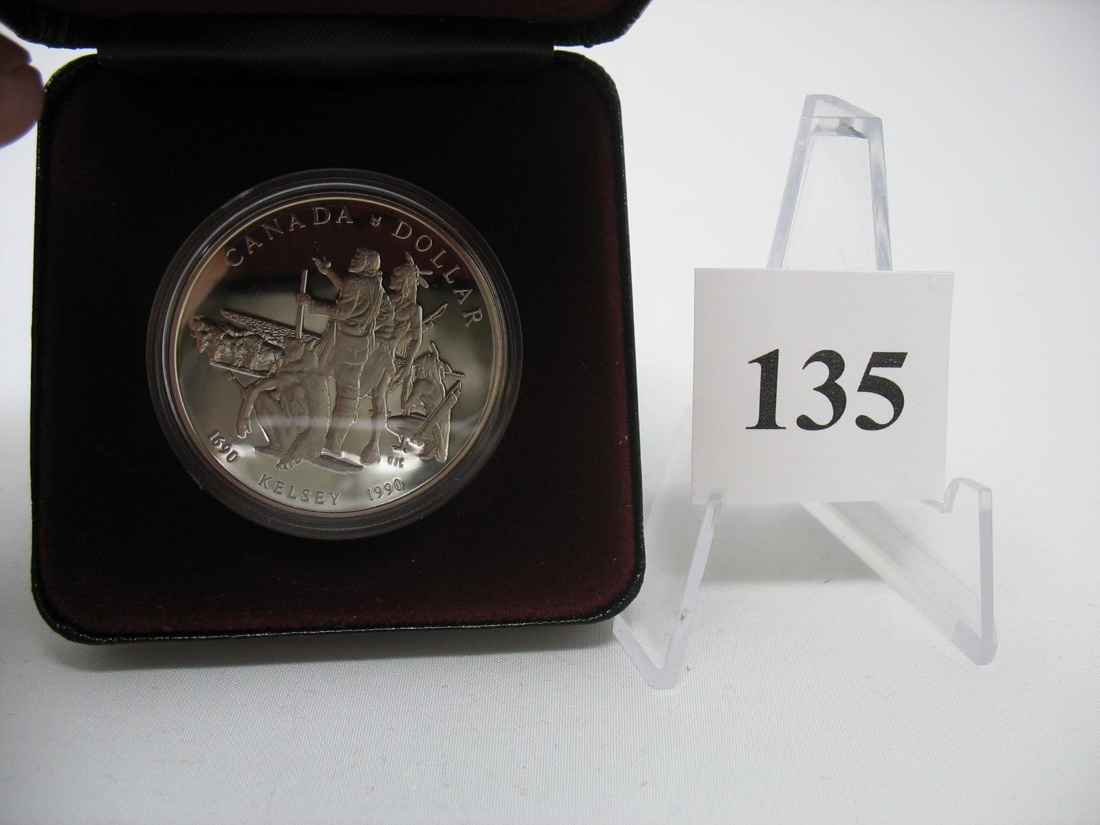 1990 CANADIAN CASED SILVER DOLLAR - HENRY KELSEY'S EXPLORATION