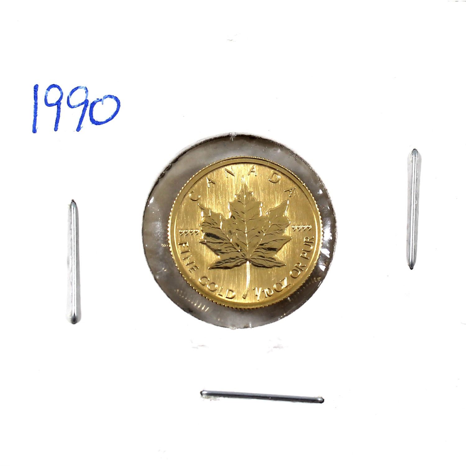 1990 Canada 1/10oz .9999 Fine Gold Maple Leaf (TAX Exempt).