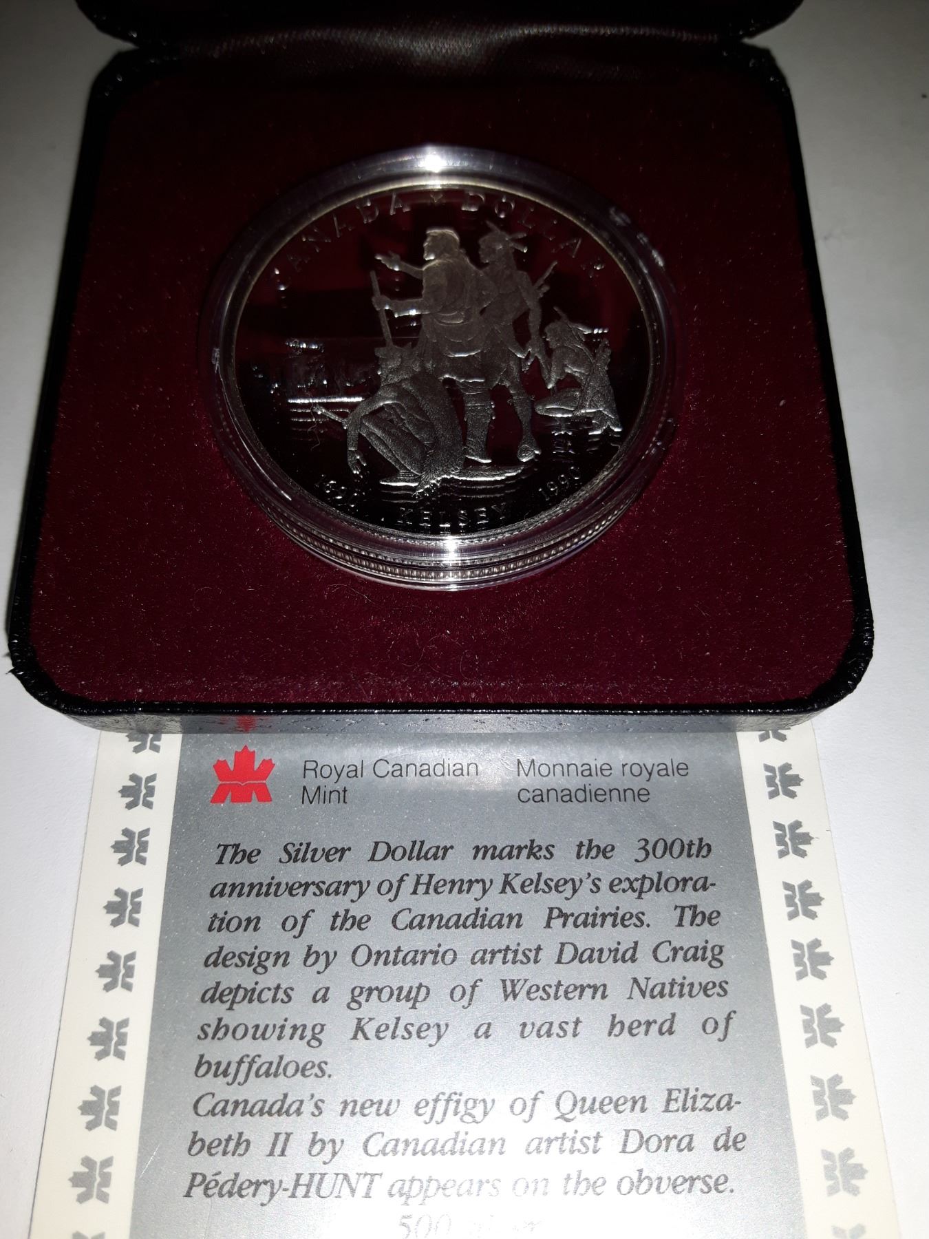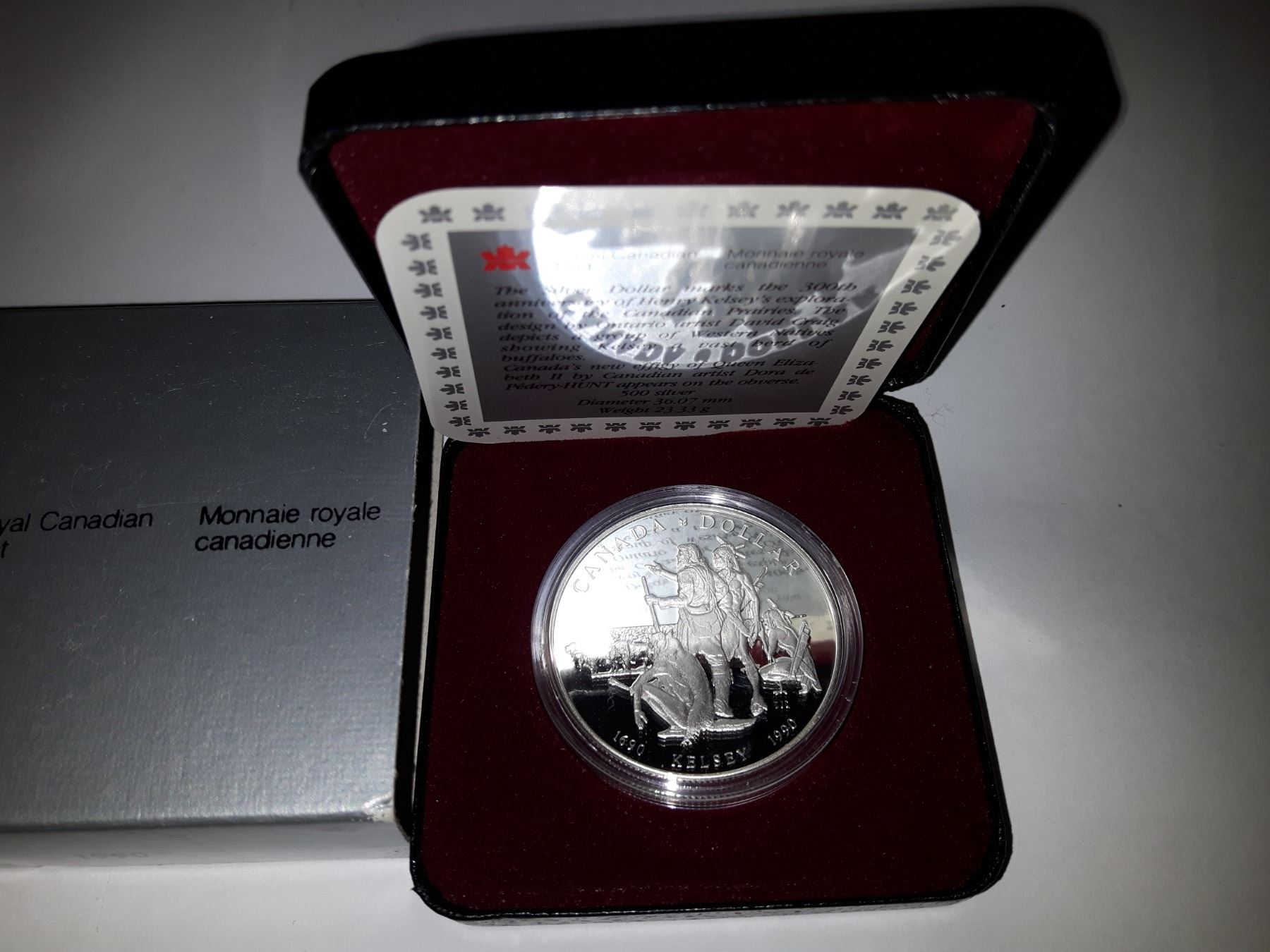 1990 Canada Proof Silver Dollar - 300th Anniversary Henry Kelsey Exploration - with box and mint certificate