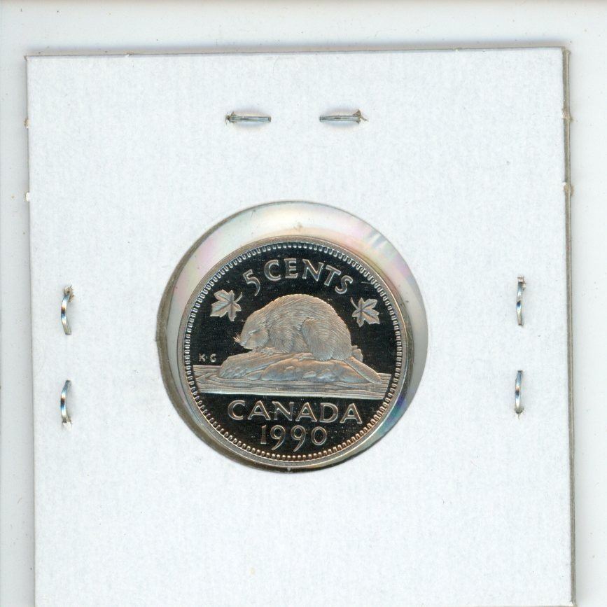 1990 Canadian 5 Cents. Sterling Silver. Proof with Ultra Heavy Cameo. Nice.