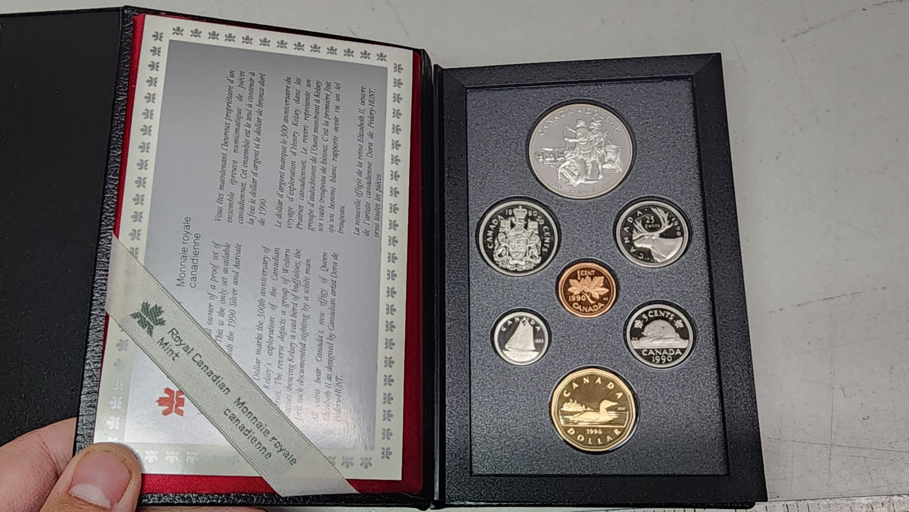 1990 Canadian double dollar 7 coin proof set - Kelsey silver dollar - in case