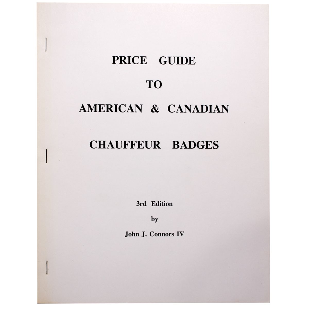 Connors IV, John J. Price Guide to American and Canadian Chauffeur Badges. With 14pp. Of the history of chauffeur badges and licenses in North America. Covers each American state and Canadian province with brief backgrounds and associated values for badges used there. This is No. 89 of the Third Ed., 1990. 124 pp. Soft cover/staple bound. 8.5" x 11". - Vinegar Collection