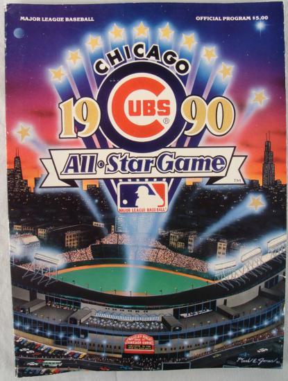 The 1990 All-Star game was held at Wrigley Filed in Chicago. This program is filled with bountiful amount of information on the Chicago Cubs history, the All-Star games history (stats and scores), and stats/line-ups for the game. The cover is a picture of packed house at Wrigley Field hosting the 61st annual All-Star game. The program is in good condition with a slight curve and partial surface wear. Don't miss out on this very nice collectors item. The item you will receive is similar to the one pictured, with only very slight, if any, variance.
