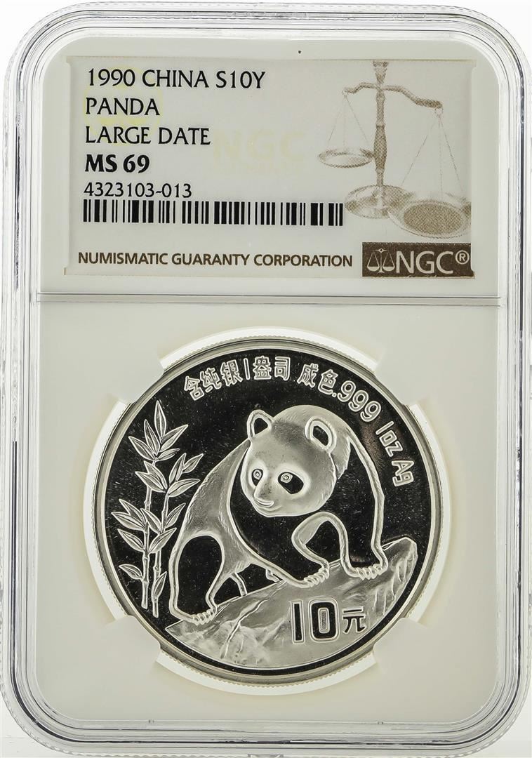 One 1990 China 10 Yuan Silver Panda NGC MS69. NGC Certified.