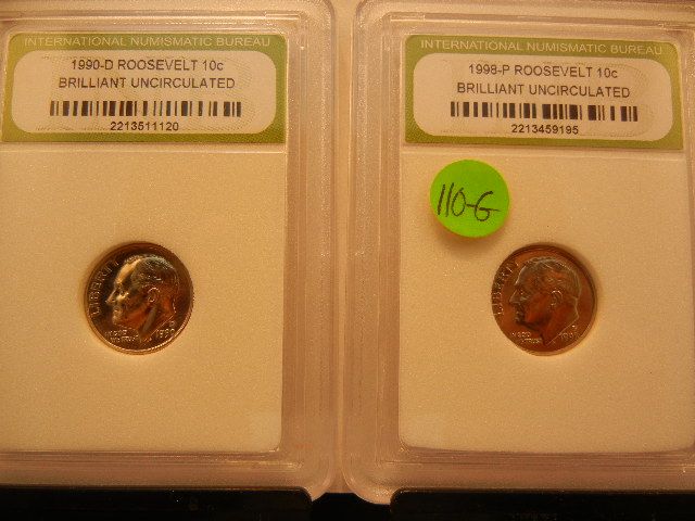 1990-D BU UNC. Roosevelt Dime & 1998-P BU UNC.Roosevelt Dime Graded By INB