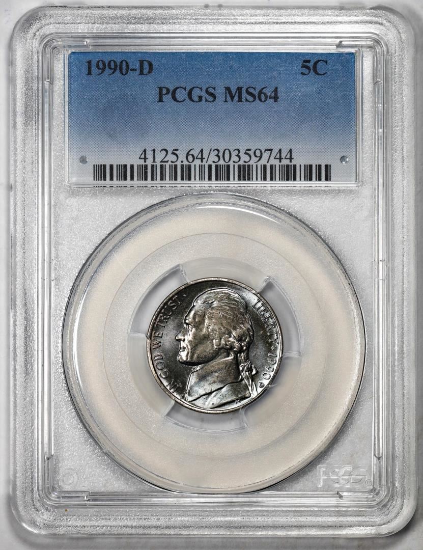 One 1990-D Jefferson Nickel Coin PCGS MS64. PCGS Graded.