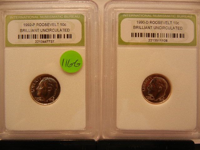 1990-D UNC. BU Roosevelt Dime & 1992- P UNC. BU Roosevelt Dime Graded By INB