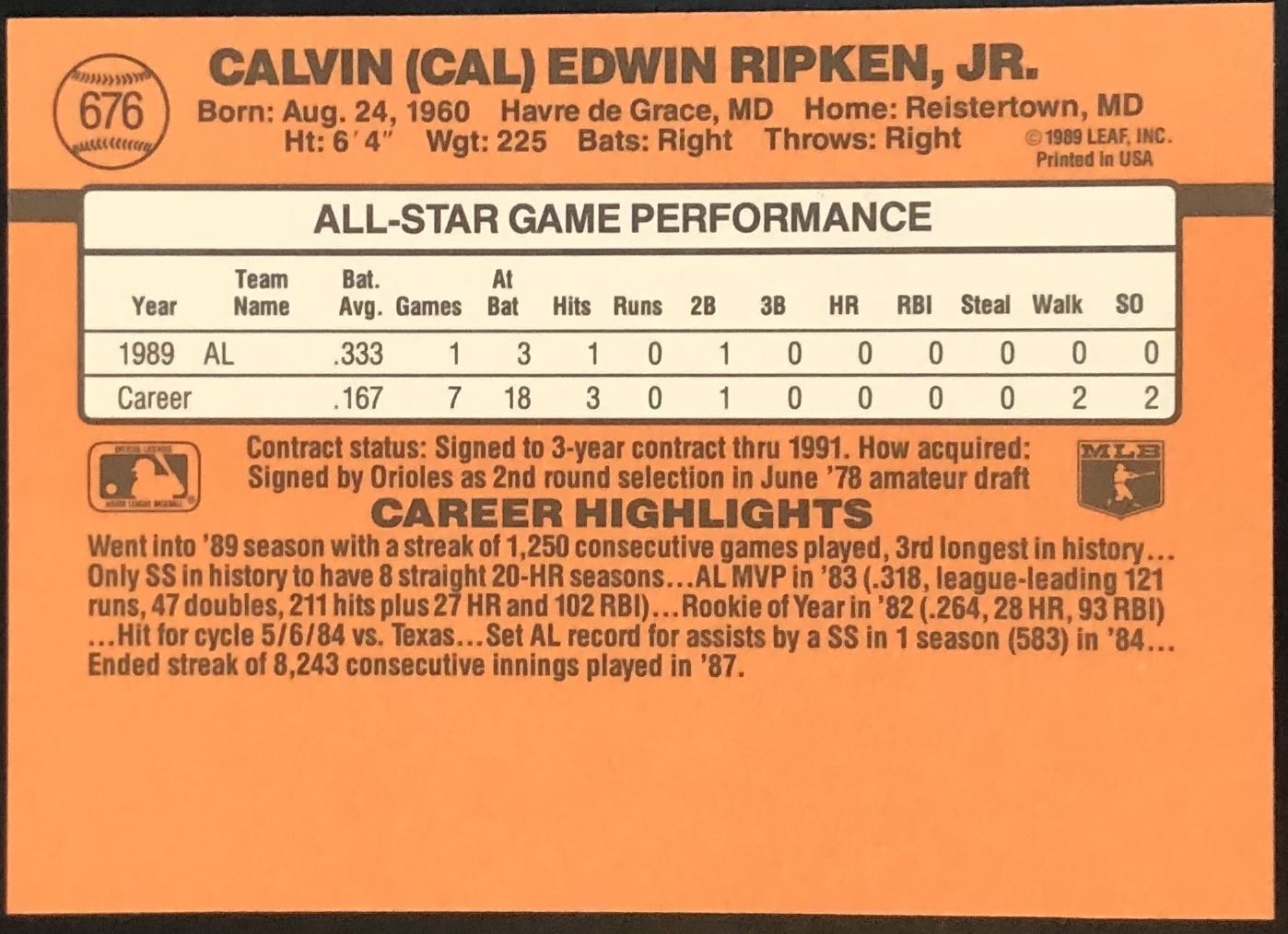 Card #676 MLB, baseball, hall of fame