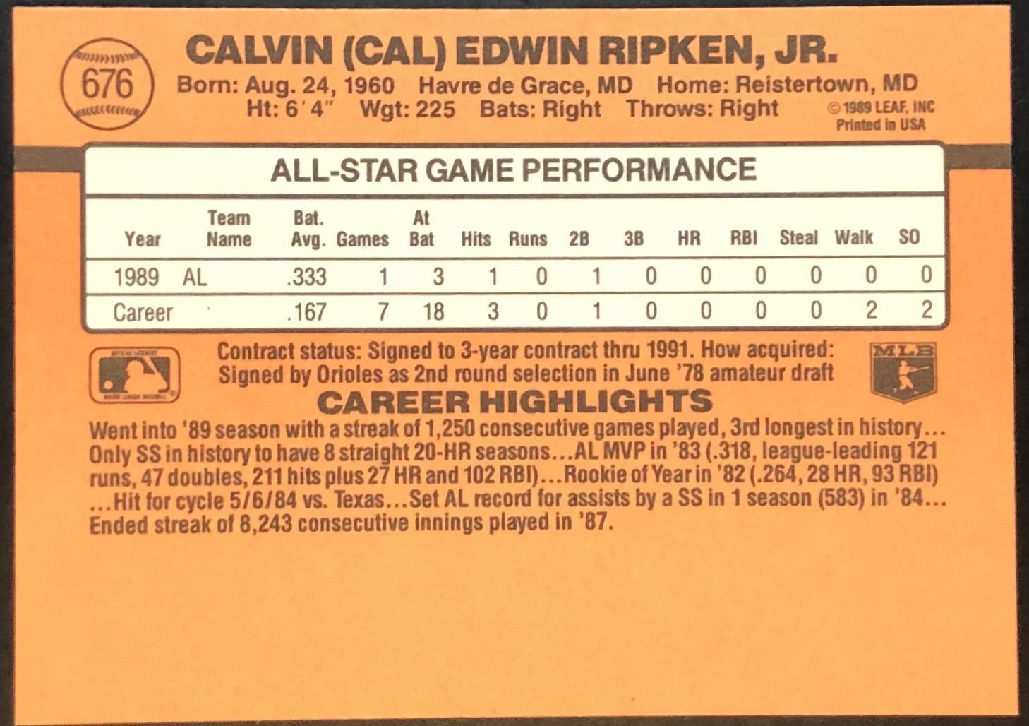 Card #676 MLB, baseball, hall of fame