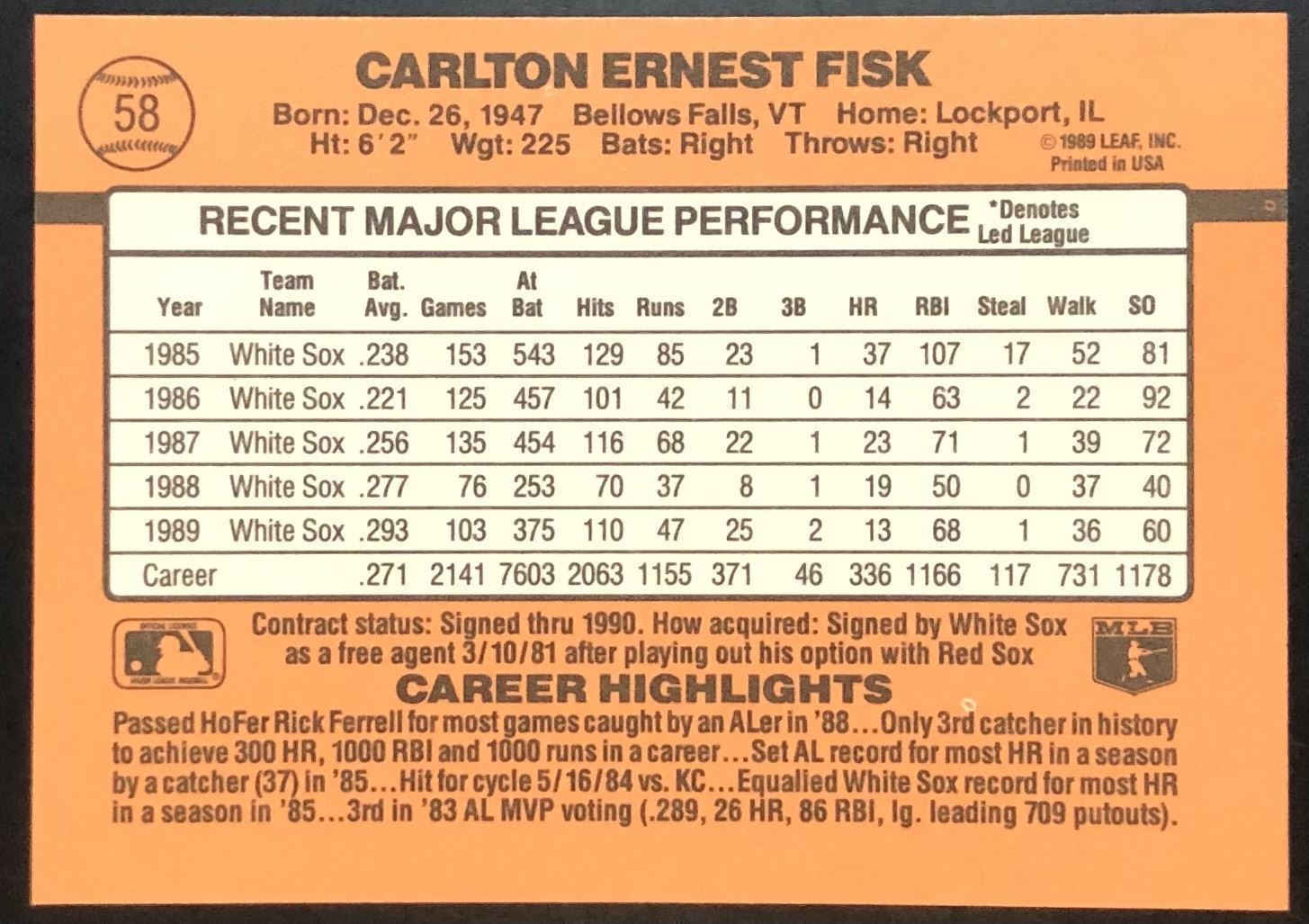 Card #58 MLB, baseball, hall of fame