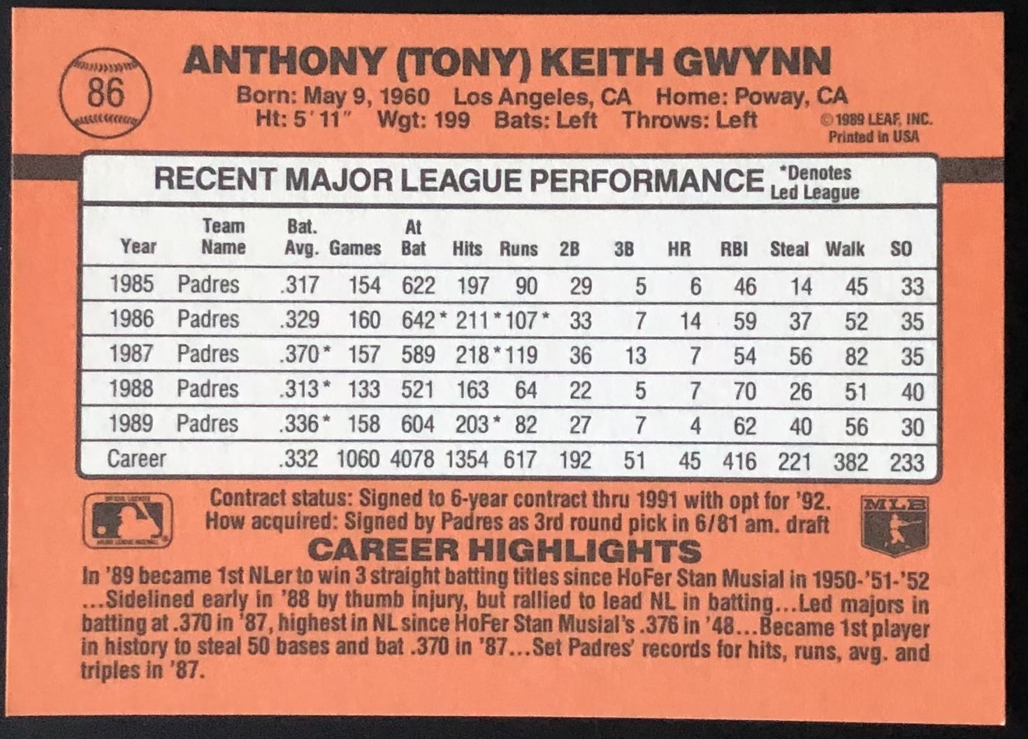 Card #86 MLB, baseball, hall of fame