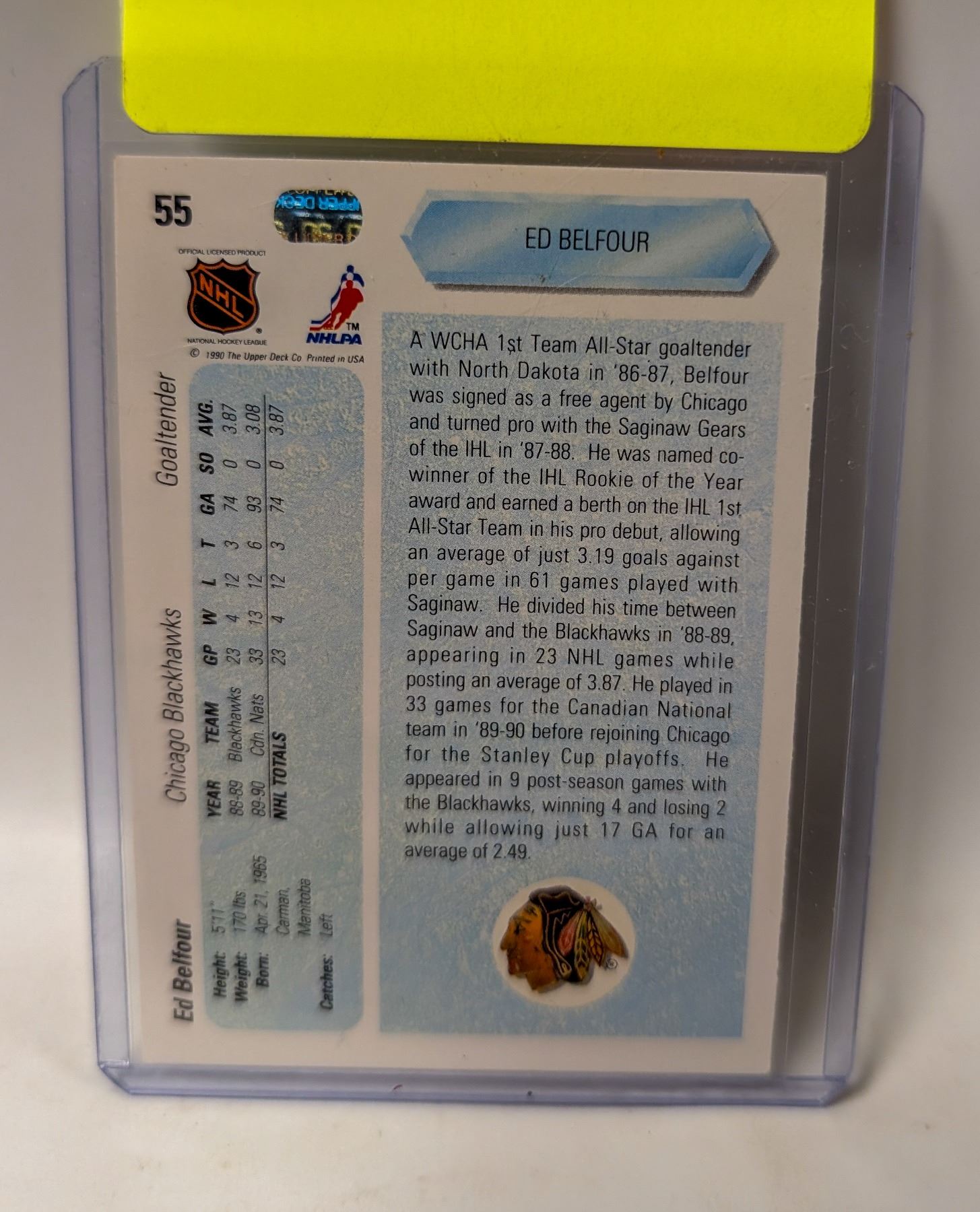 1990 ED BELFOUR ROOKIE CARD UPPER DECK