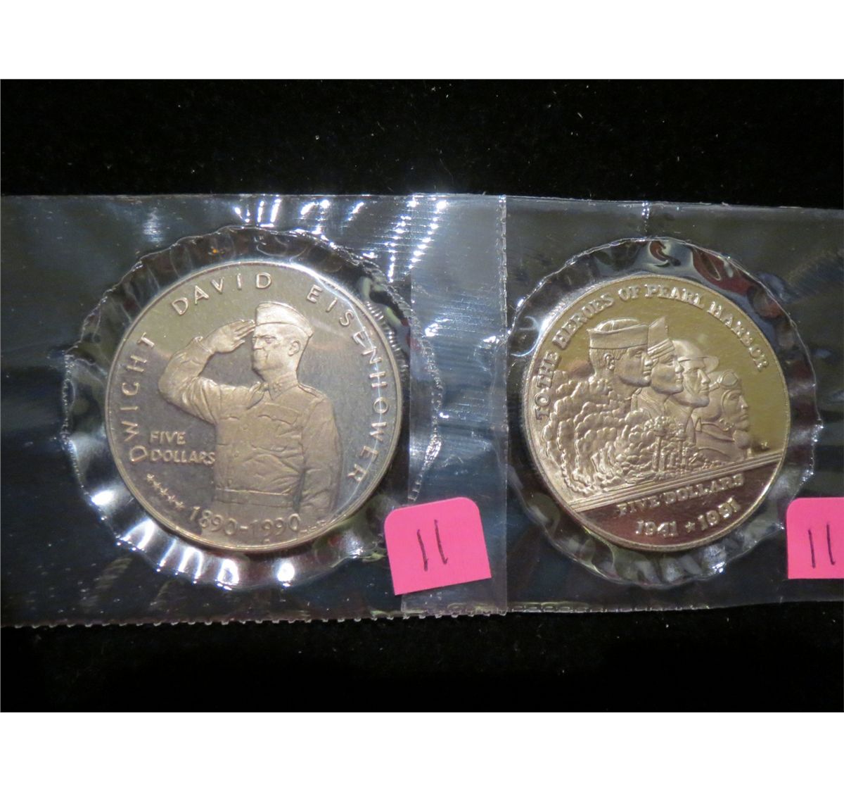 1990 Eisenhower & 1991 To the Heros of Pearl Harbor - $5 Commemoratives Marshall Islands
