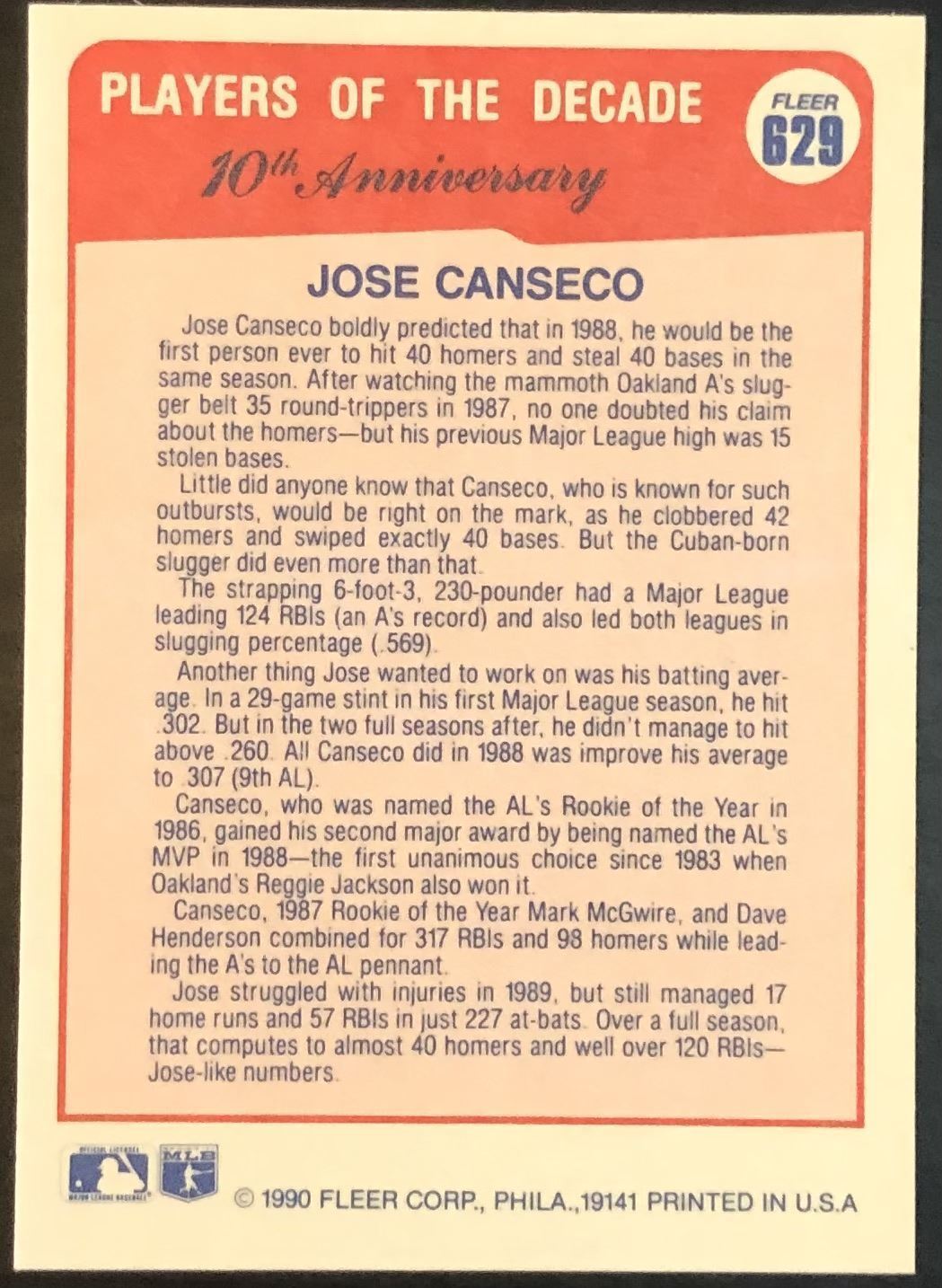 Card #629 MLB, baseball