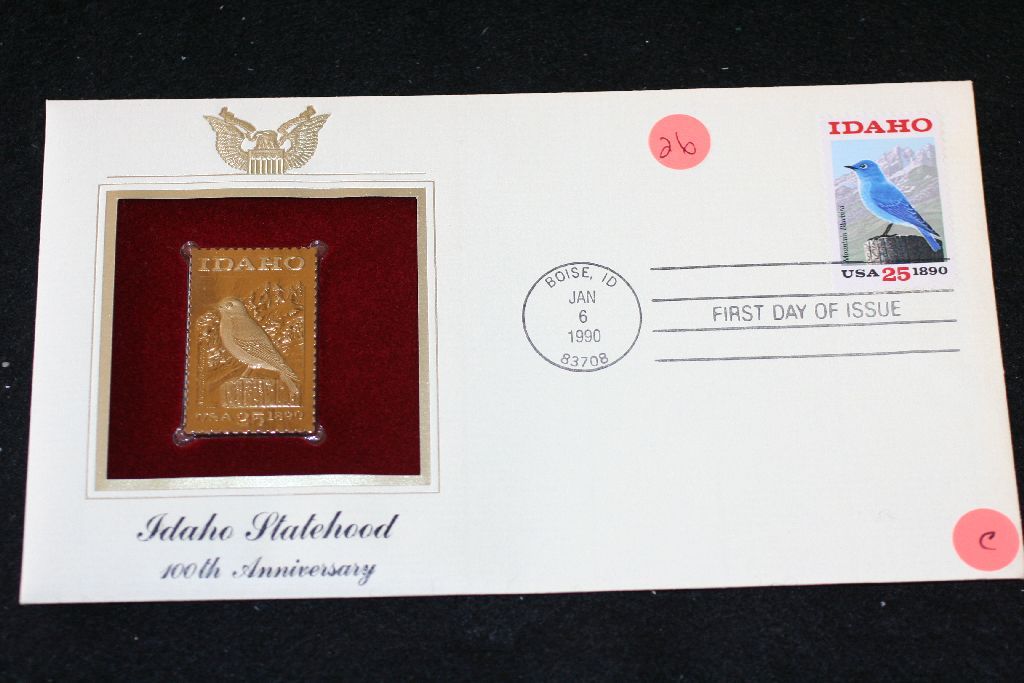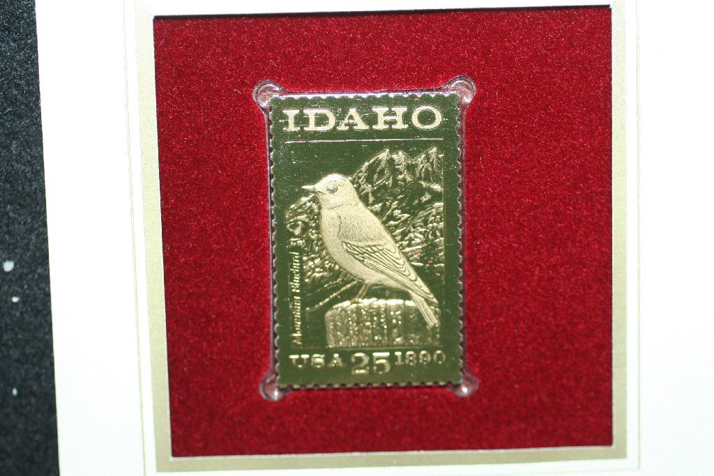 1990 First Day Issue 22K Gold Replica Stamp W/Postal Stamp; Idaho Statehood 100th Anniversary