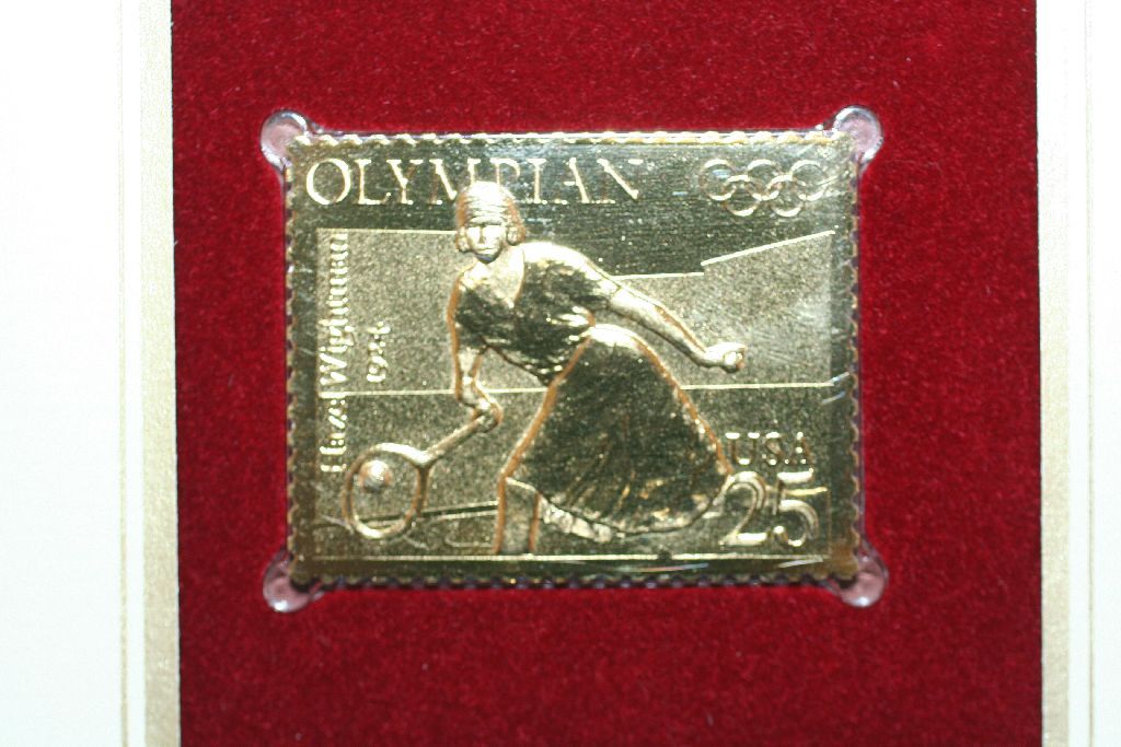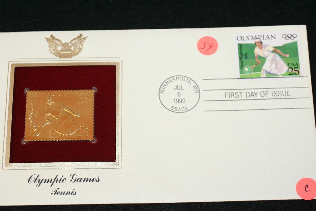 1990 First Day Issue 22K Gold Replica Stamp W/Postal Stamp; Olympic Games Tennis