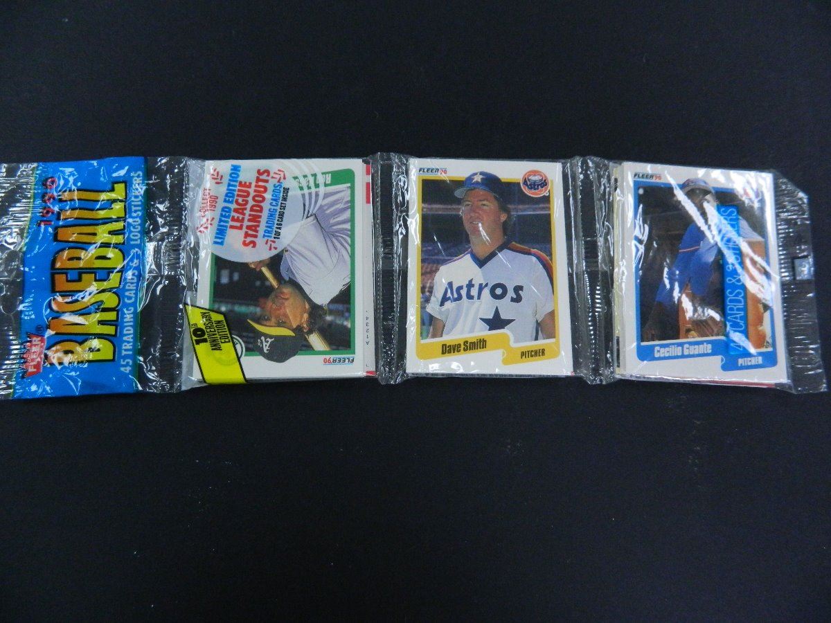 1990 Fleer Baseball Unopened Rack Pack, 45 cards plus 3 logo stickers