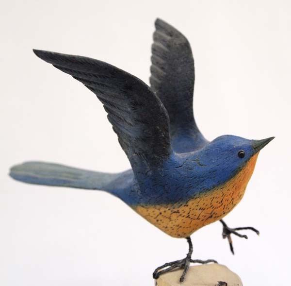1990 Hand Carved Bluebird by Marsh, measures 10''H x 5''W x 10''L, signed by artist