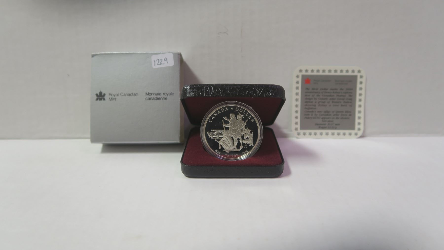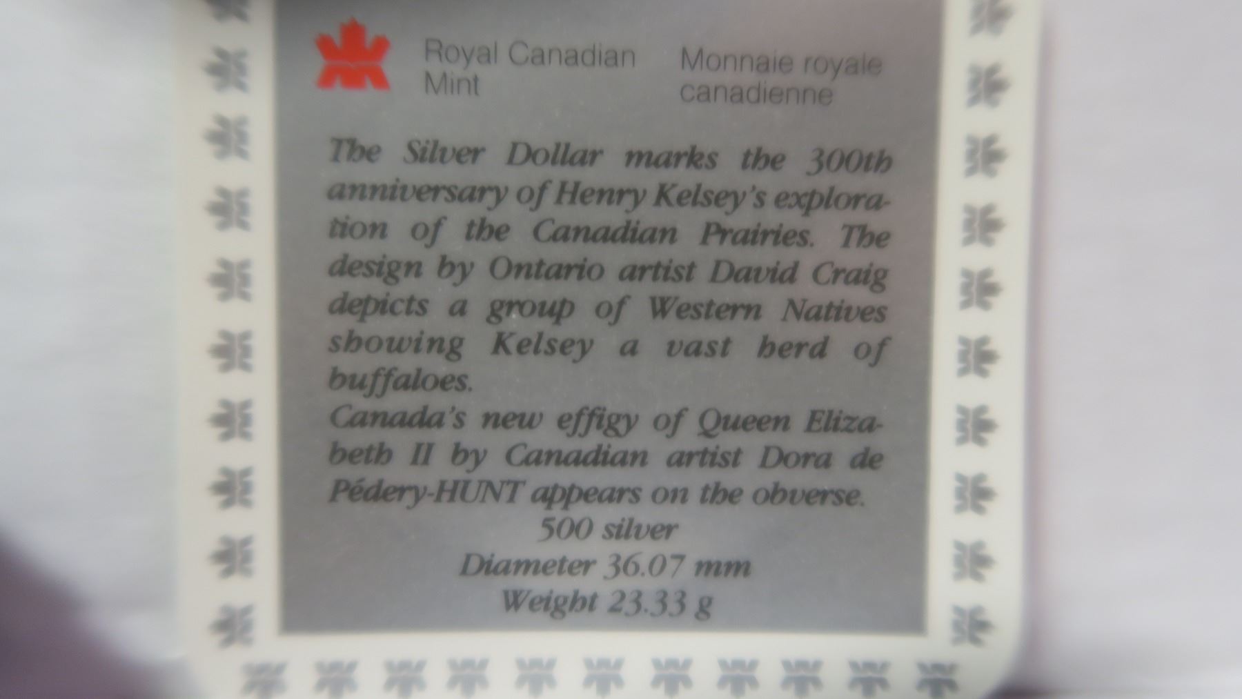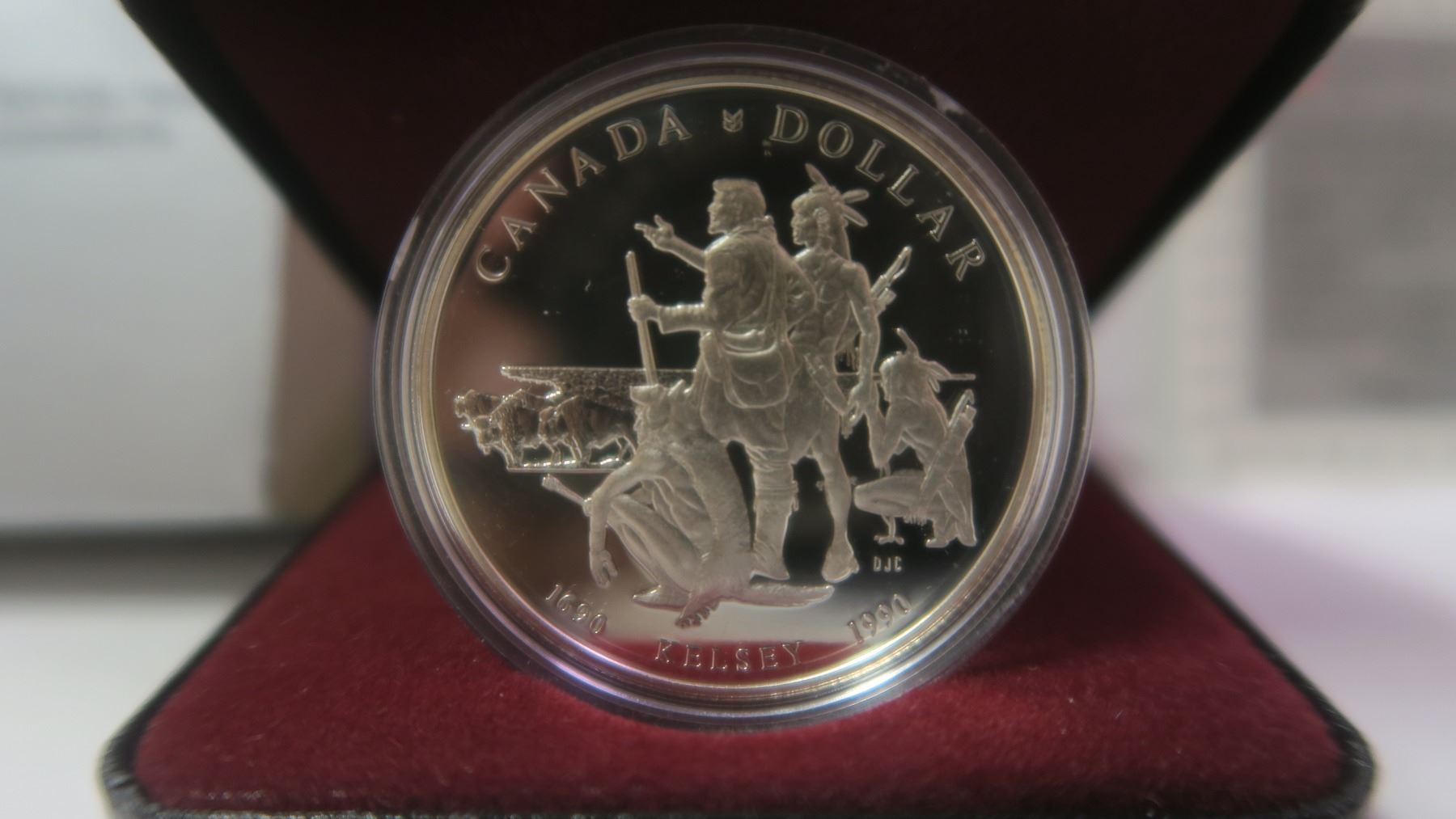 1990 Henry Kelsey Silver Dollar. Commemorates the 300th Anniversary of HBC fur trader Henry Kelsey and his exploration of Canada’s West. Proof with Ultra Heavy Cameo. Housed in its original case of issue.
