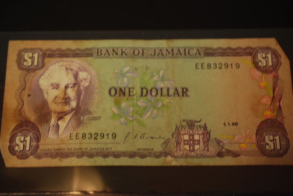 1990 Jamaica $1 Foreign Bank Note; EST. $3-6