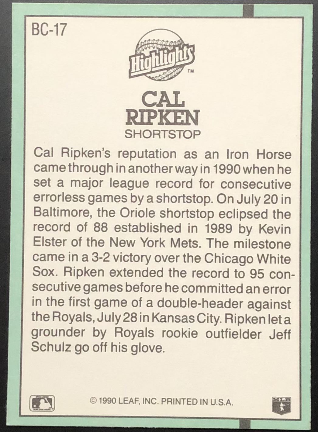 Card #BC-17 MLB, baseball, hall of fame, Donruss