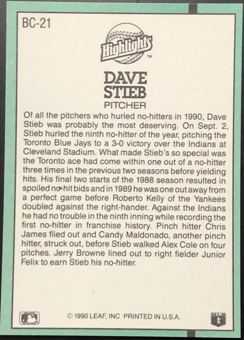 Card #BC-21 MLB, baseball, Donruss