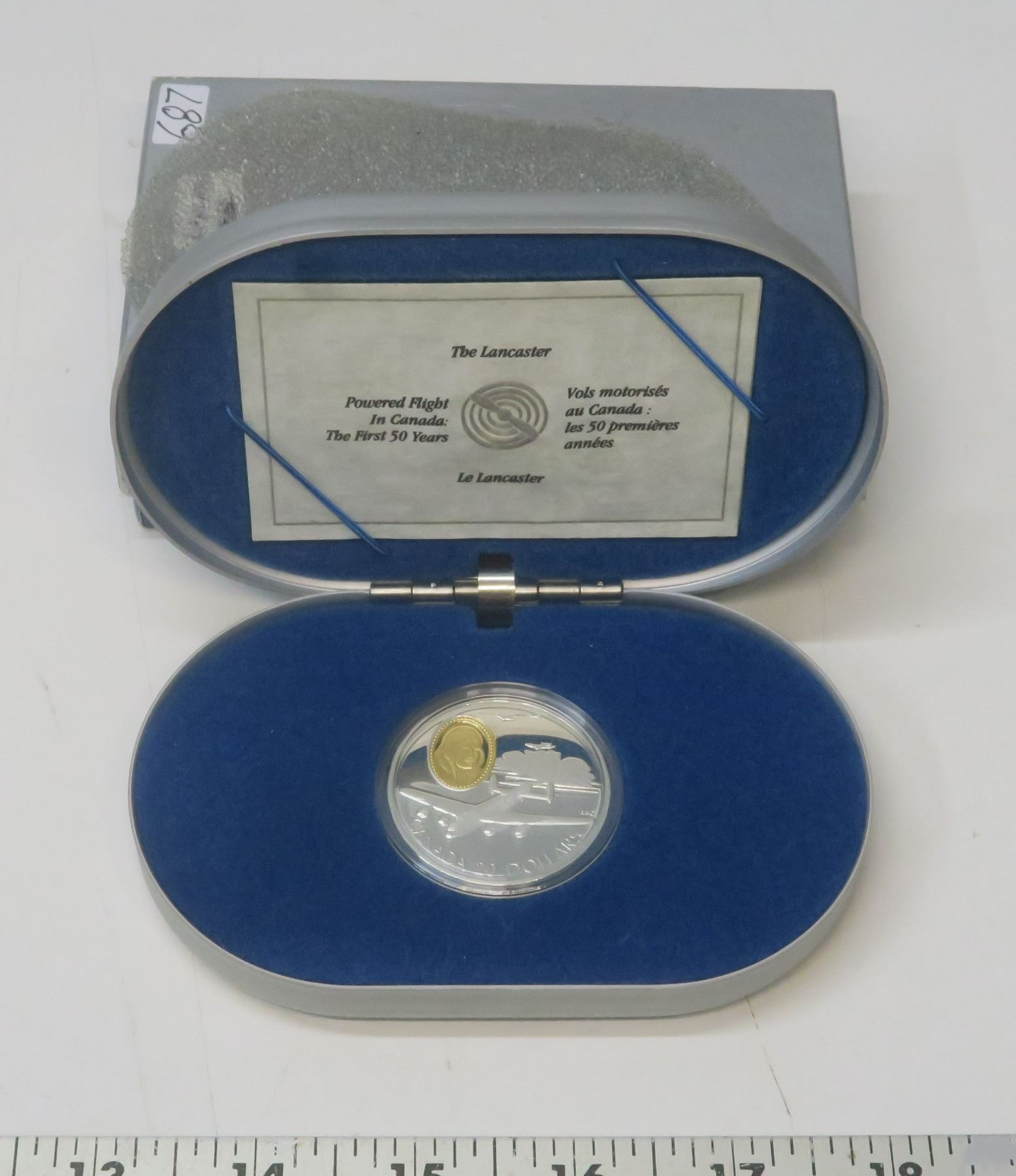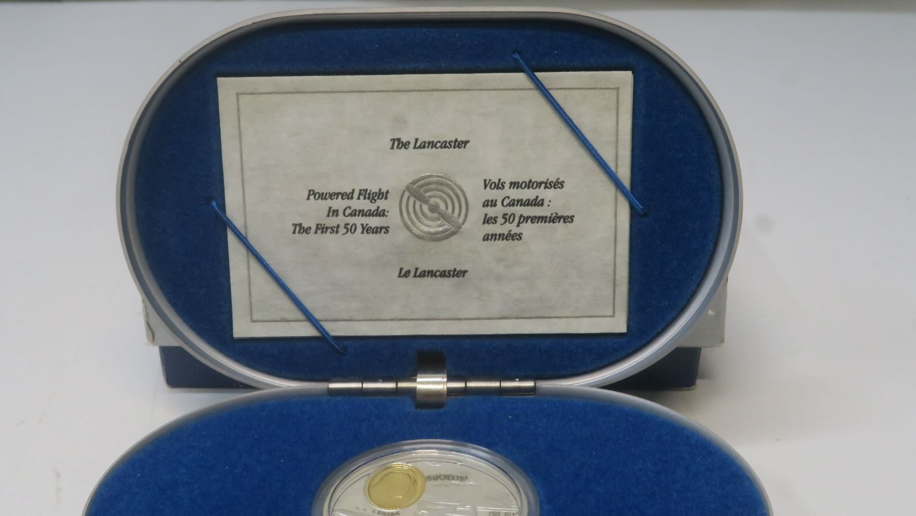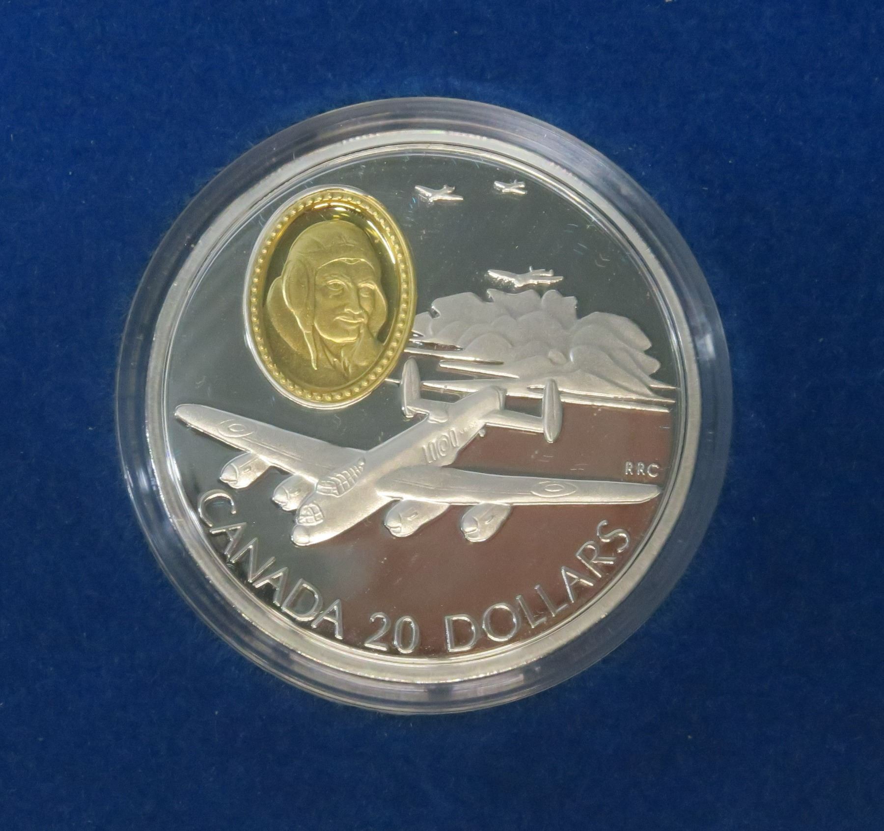 1990 Lancaster Bomber $20. Sterling Silver with Gold Plating. Proof with Ultra Heavy Cameo. Housed in its original case & box of issue. Scarce.