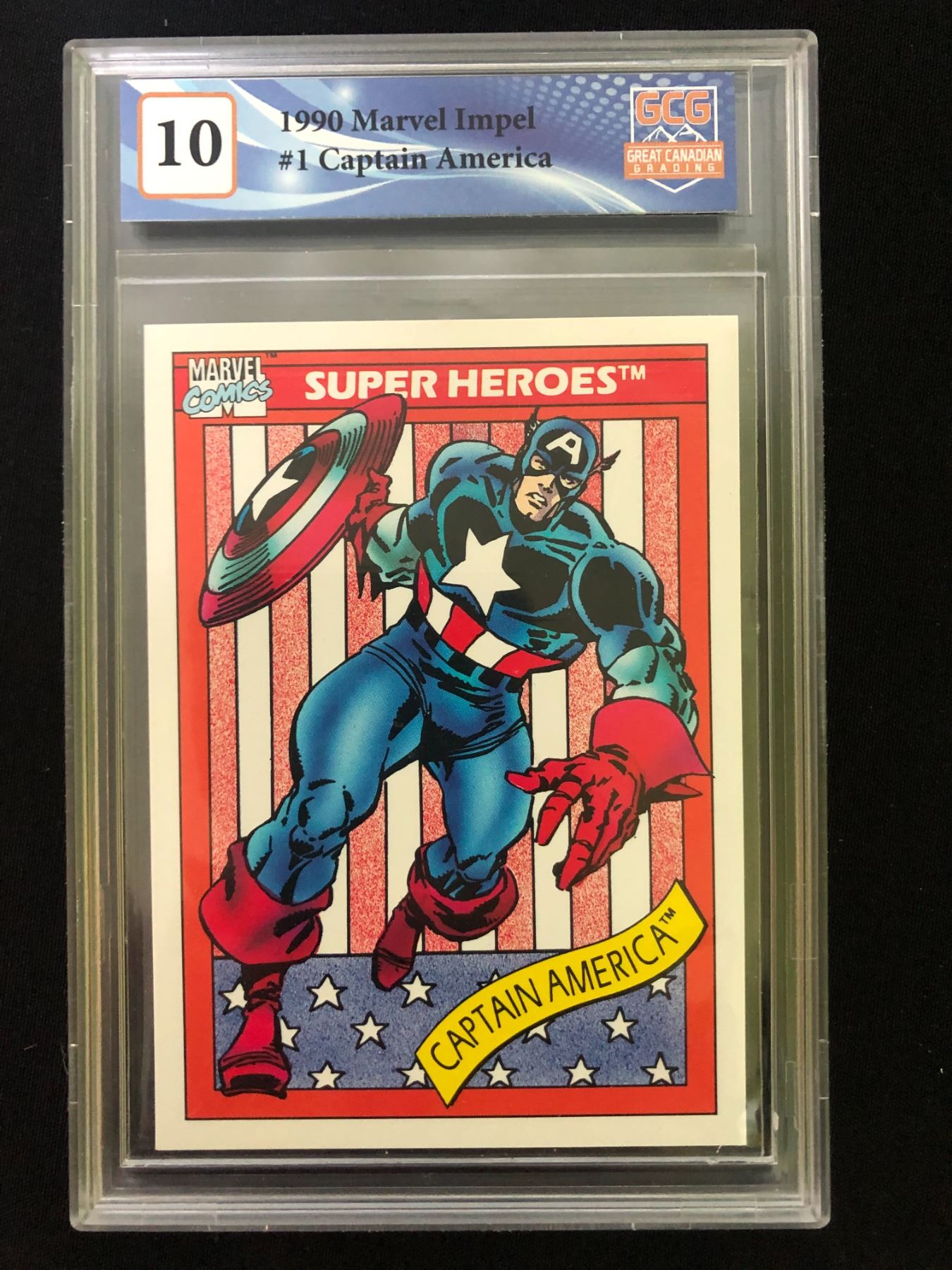 1990 MARVEL IMPEL #1 CAPTAIN AMERICA ROOKIE CARD (GCG 10)