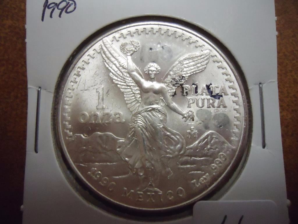 1990 MEXICO 1 OZ. SILVER LIBERTAD UNC WITH MARKER