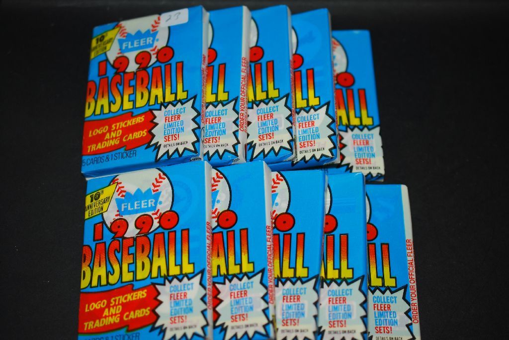 1990 MLB 10th Anniversary Edition Baseball Trading Cards; Various Dates, Players & Teams; Lot of 10 Unopened Packs; Lot of 15 Cards & 1 Sticker Per Pack; EST. $10-15
