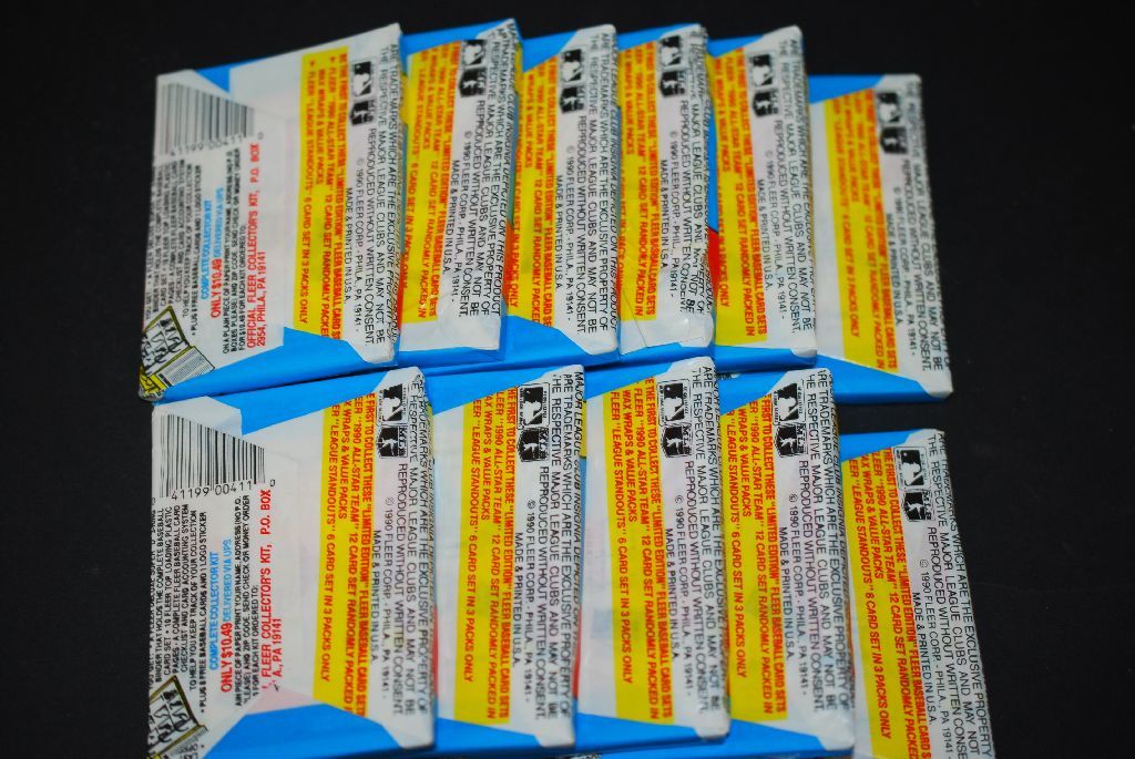 1990 MLB Baseball Trading Cards; Various Players & Teams; Lot of 10 Unopened Packs With 15 Cards & 1 Sticker Per Pack; EST. $10-15