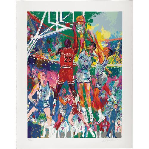 <B>1990 Michael Jordan Serigraph by Leroy Neiman.</B></I> Dazzlingly color style is unmistakably that of the biggest name in sports art. Here he turns his attentions to the Chicago Bulls megastar in a work he entitles simply "Magic." The print on canvas measures 26x35" and is limited to an edition of just 250, of which this is number 209. The work is numbered and signed by Neiman himself in 10/10 pencil, and the print itself is likewise free of flaws. A striking work from one of the most famous living artists on earth. <I>LOA from James Spence Authentication. LOA from PSA/DNA.</B></I><BR><BR><b>Shipping:</b> Flat Material, Small (<a target="_blank" href="http://www.heritageauctions.com/common/shipping.php">view shipping information</a>)