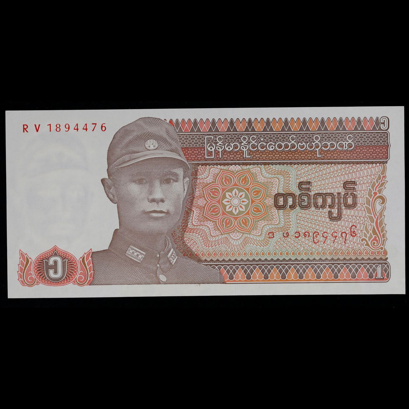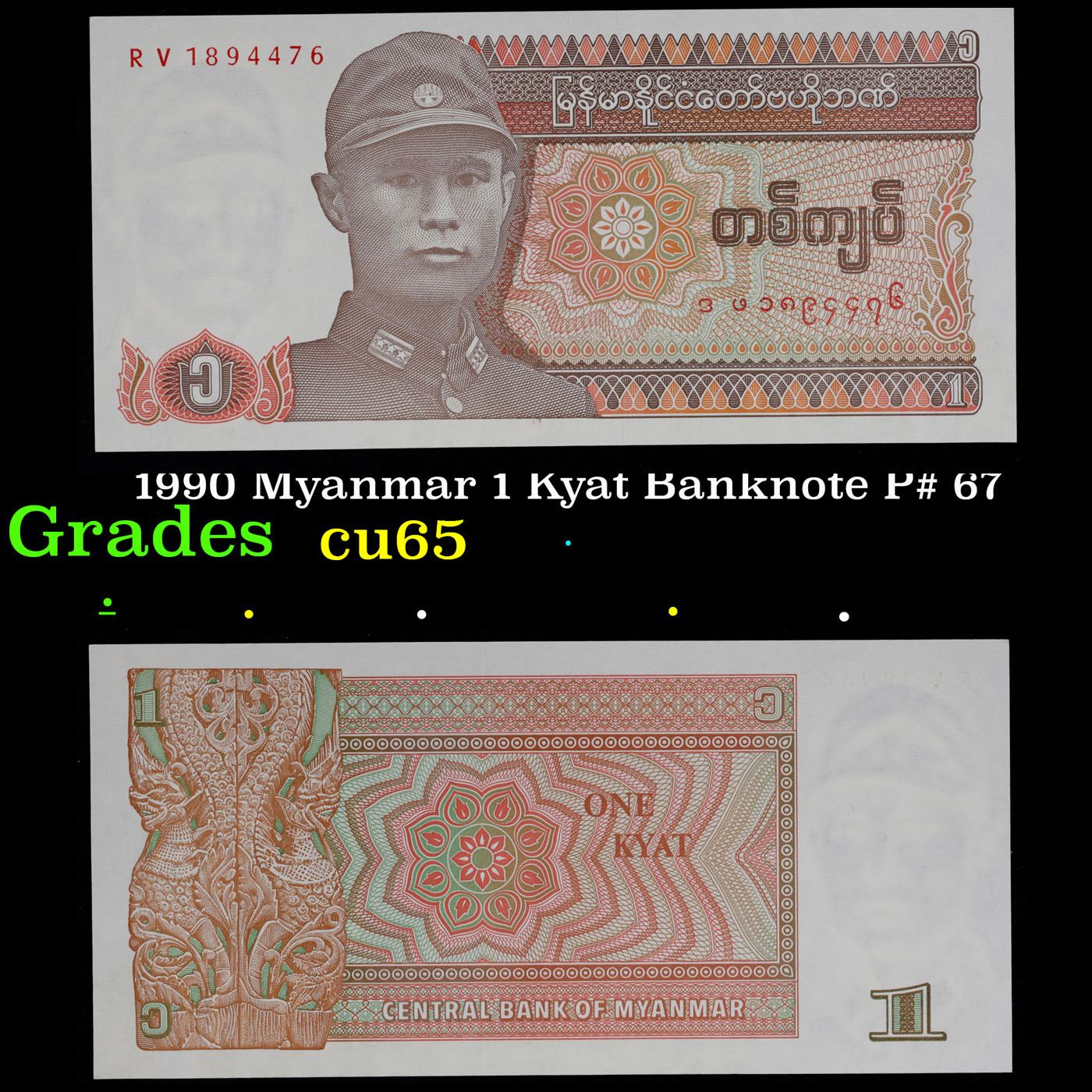 1990 Myanmar 1 Kyat Banknote P# 67 Grades Gem CU.