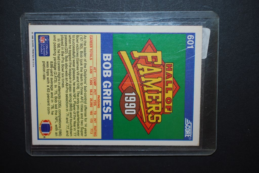 1990 NFL Bob Griese Miami Dolphins Hall Of Famer Football Trading Card; EST. $5-10