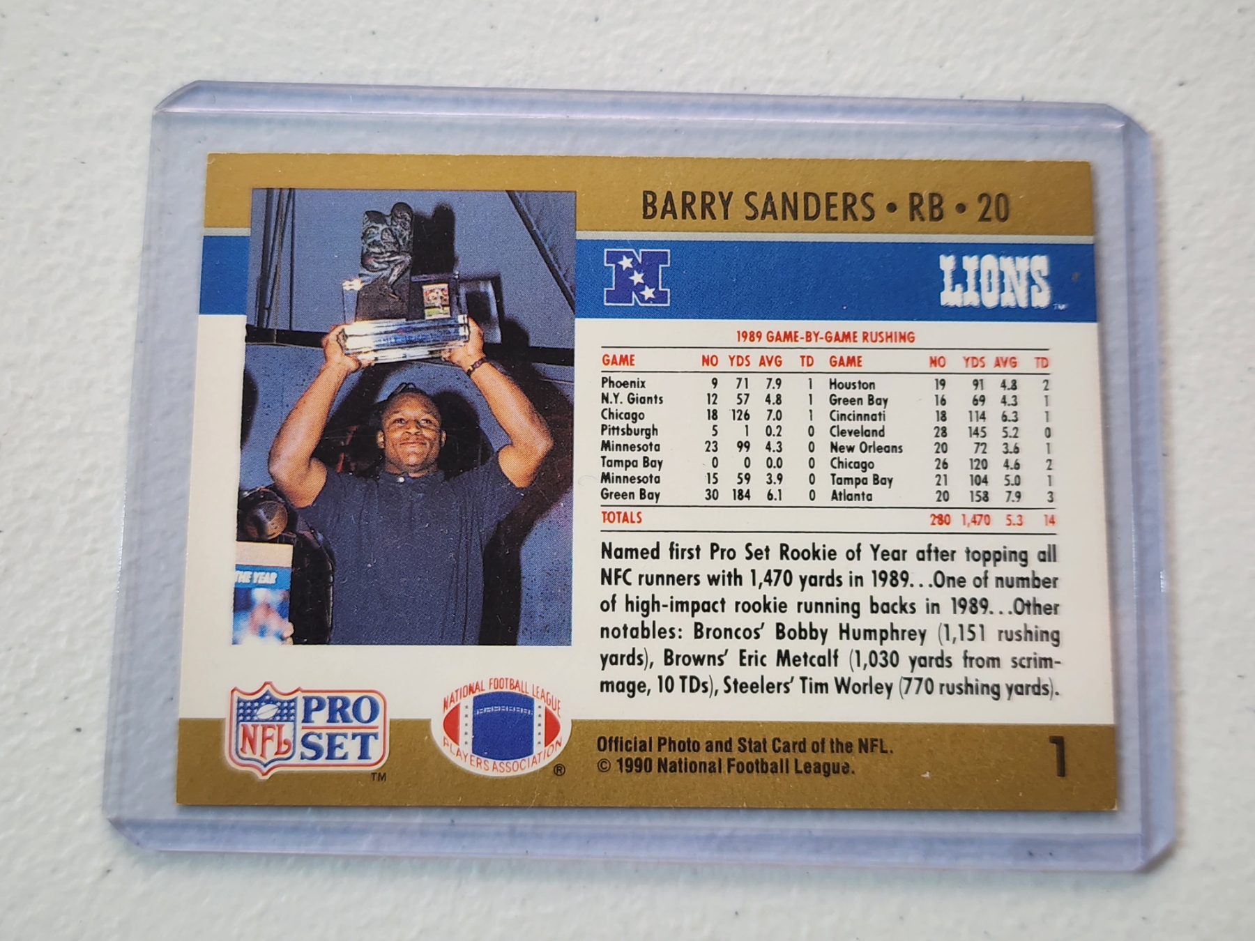 1990 NFL Pro Set Barry Sanders Rookie of the Year Card - in Protective Holder