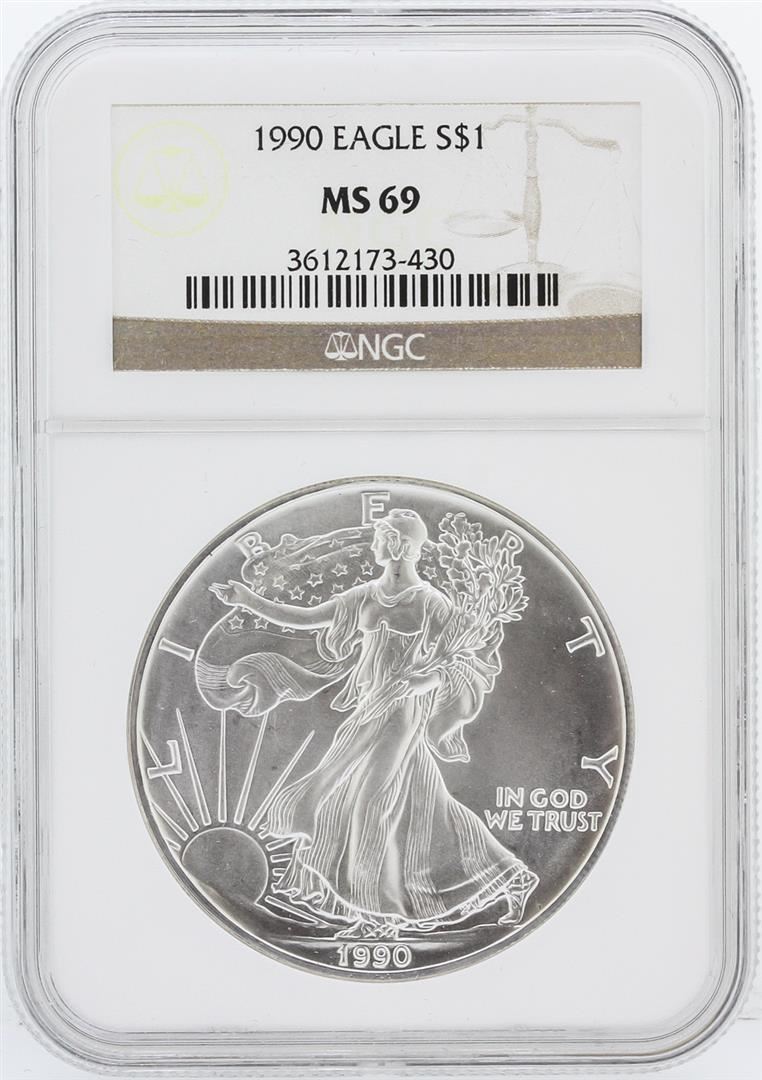 One 1990 NGC MS69 American Silver Eagle Dollar. NGC Certified.