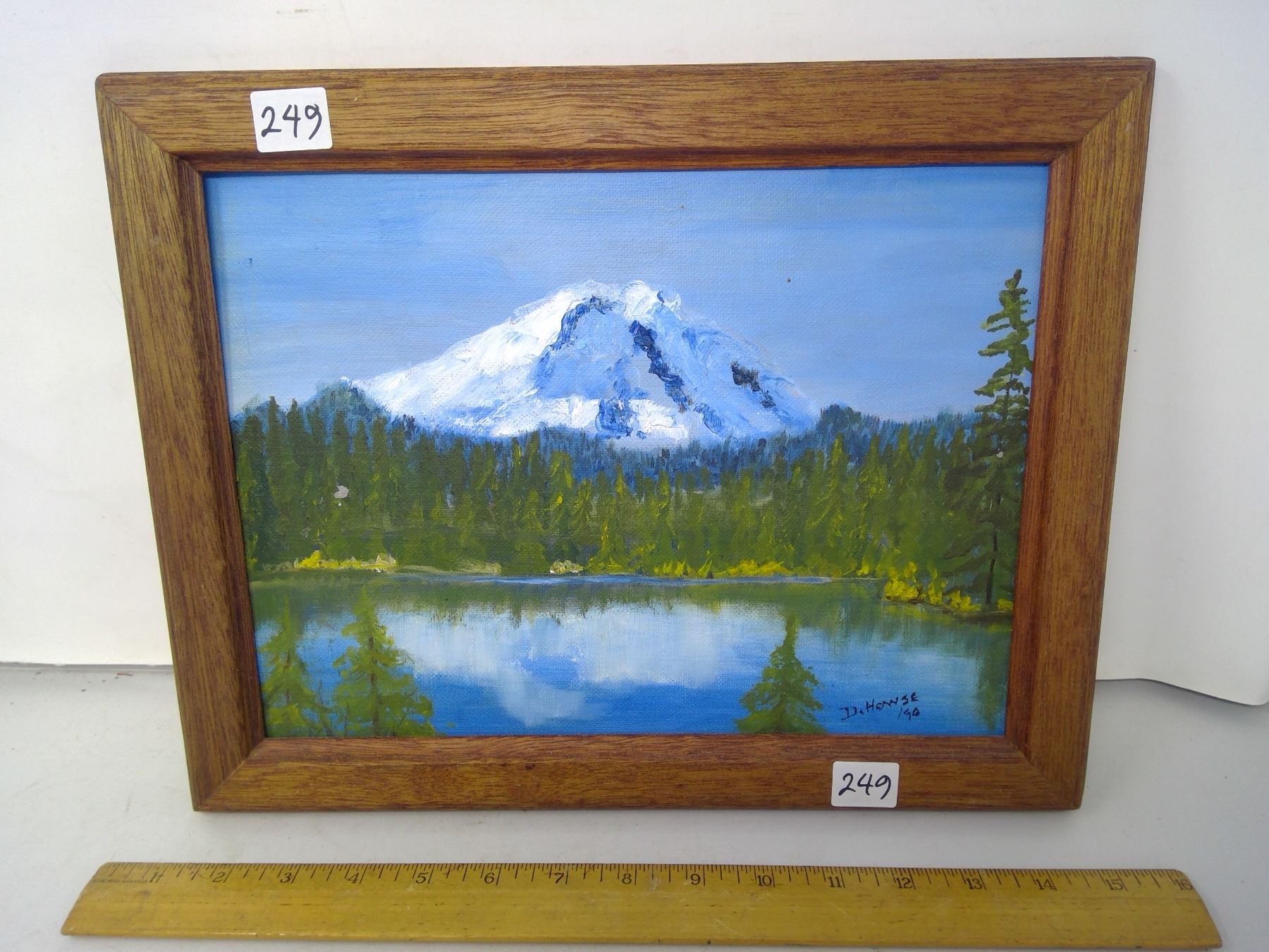1990 Original Oil Painting "Mount Shasta" Mahogany Frame