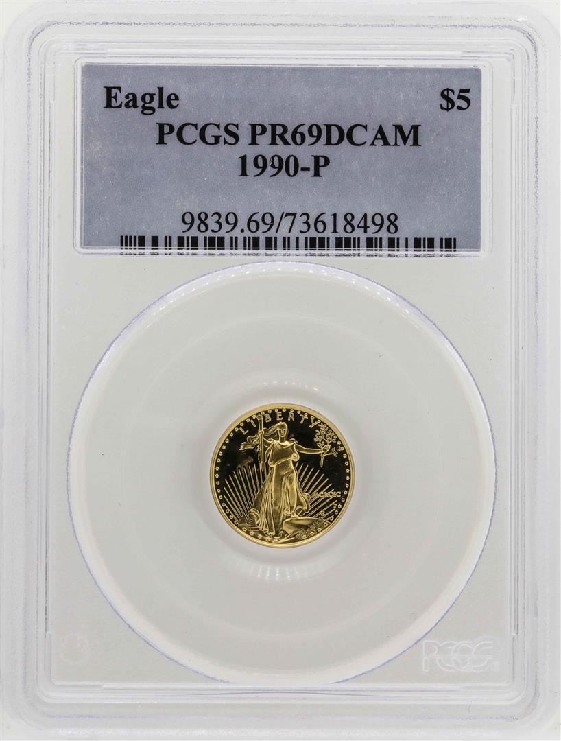 One 1990-P $5 American Gold Eagle Proof Coin PCGS PR69DCAM. PCGS Graded.