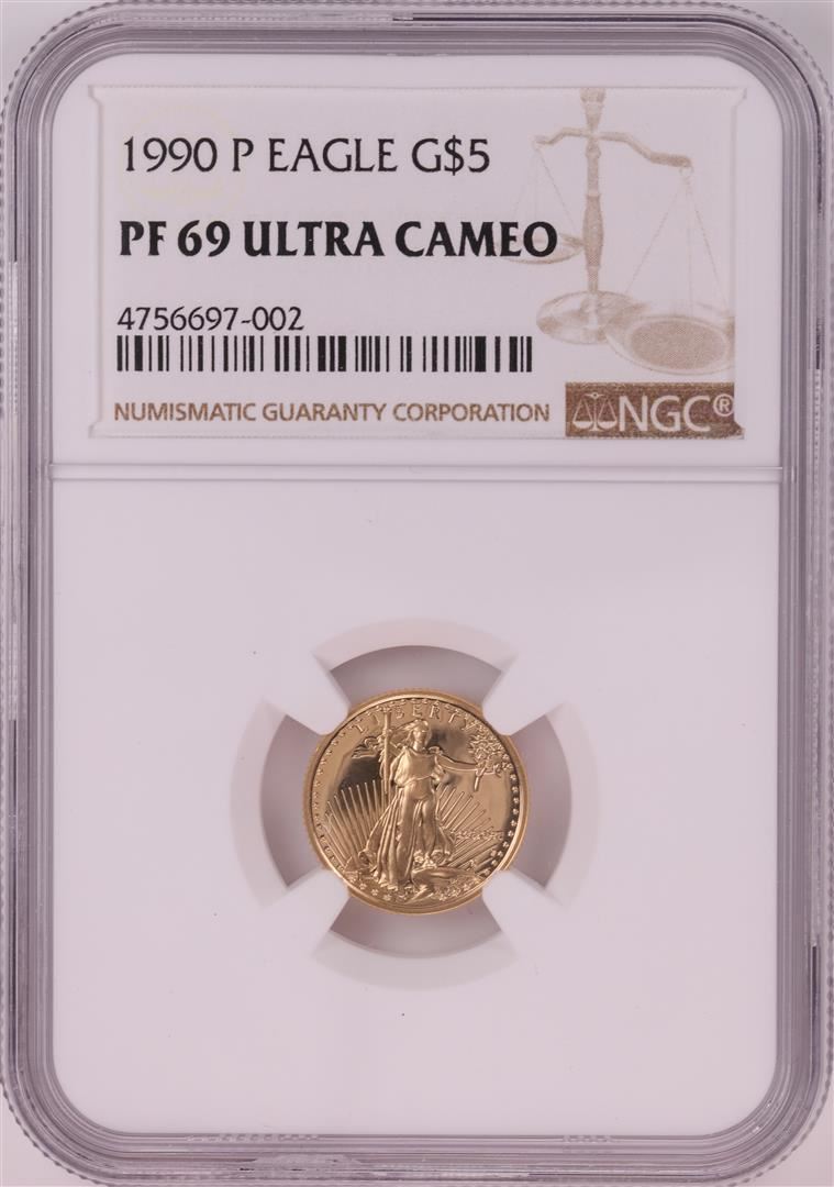 One 1990-P $5 Proof American Gold Eagle Coin NGC PF69 Ultra Cameo. NGC Certified.