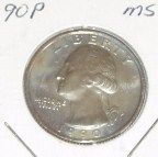 1990 P Quarter MS ***Coin, Currency & All Items Listed in this auction - Grades, Conditions and Values are not Safe Deposit Coins LLC Responsibilty. Grades, Condition and Values are determined by Consigner(s) & Buyers ONLY***