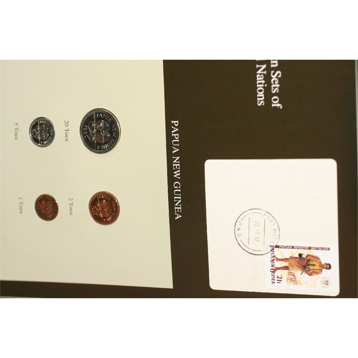 1990 Papua New Guinea; Coin Set of all Nations w/Stamp dated 1992