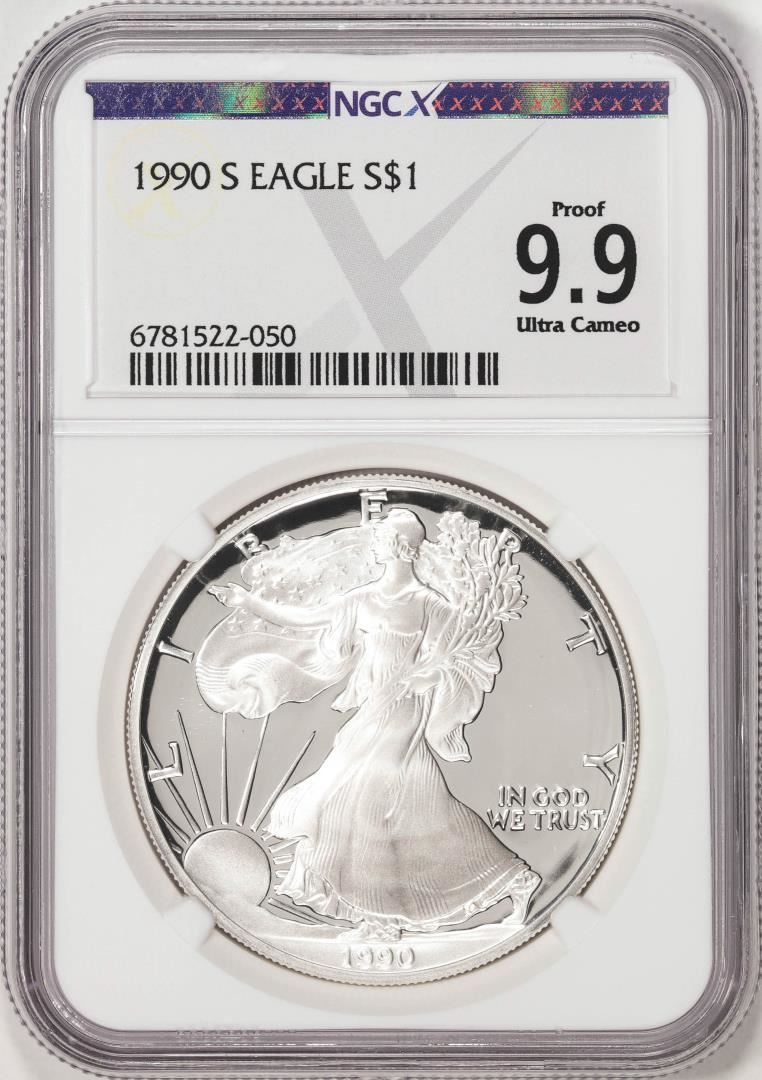 One 1990-S $1 Proof American Silver Eagle Coin NGCX Proof 9.9 Ultra Cameo. NGCX Certified.
