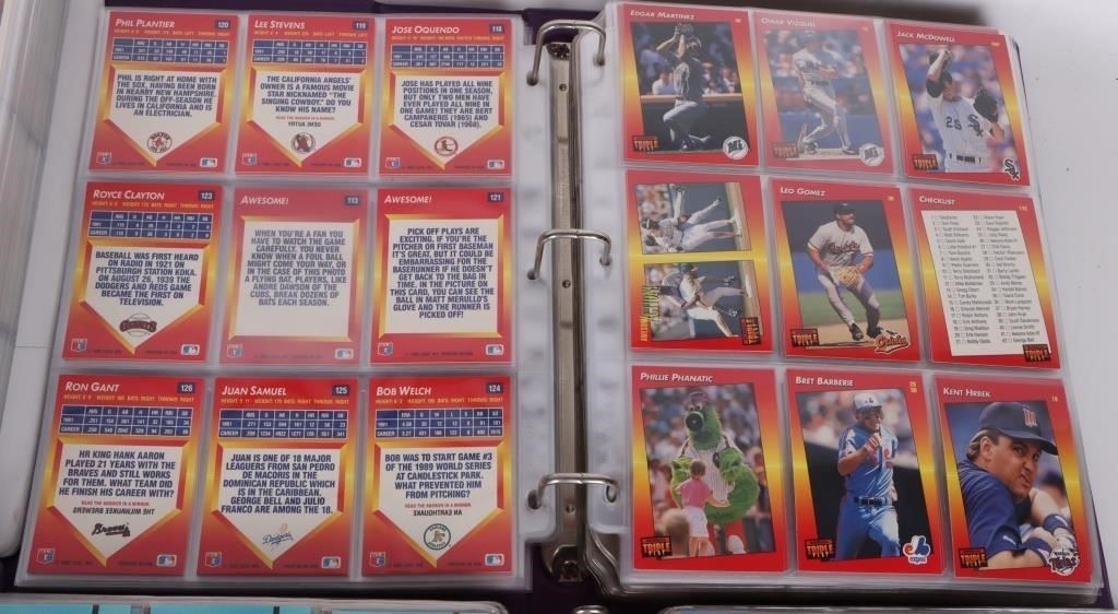 1990's Donruss baseball card sets to include one 1990 Donruss 692/716, 1991 Donruss series 1 386/386 and series 2 355/384, one 1992 Donruss series 1 396/396, and series 2 388/388, one 1993 Donruss series 1 382/396, one 1993 Triple Play 263/264, 1992 Donruss Triple Set 237/264, one 1992 Donruss Triple Play Gallery of Stars 6/12, 1993 Triple Play League Leaders 3/6, and 1993 Triple Play Nicknames 6/10.