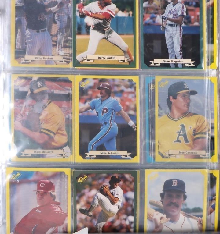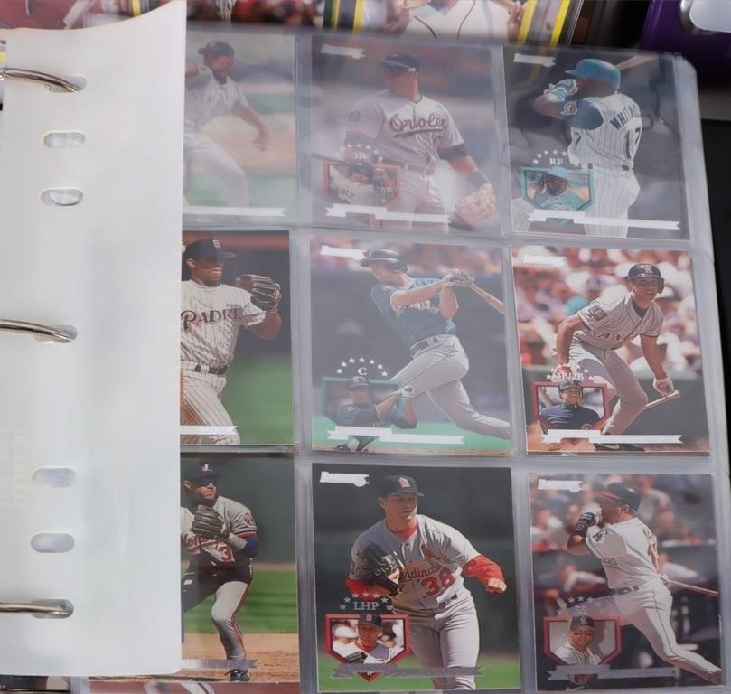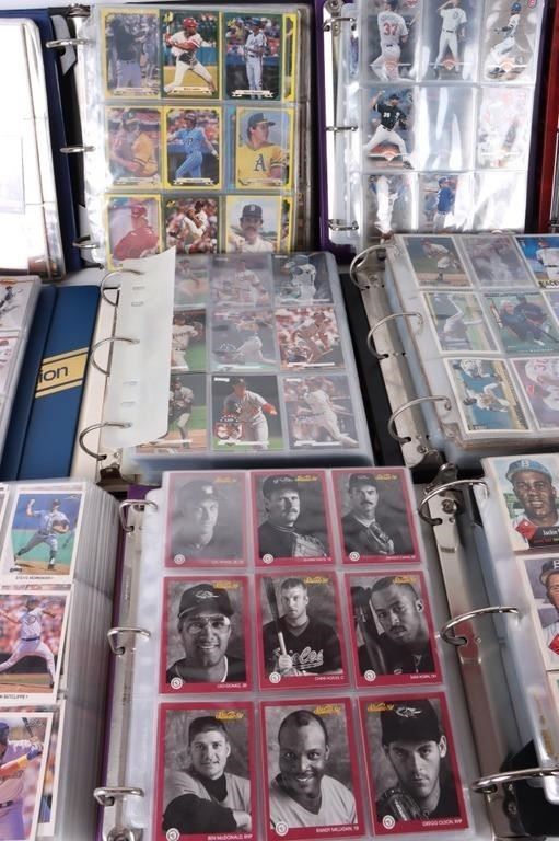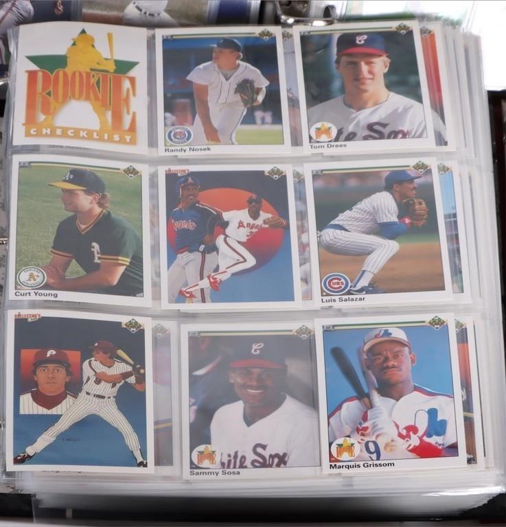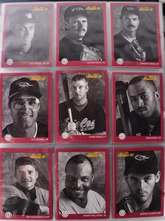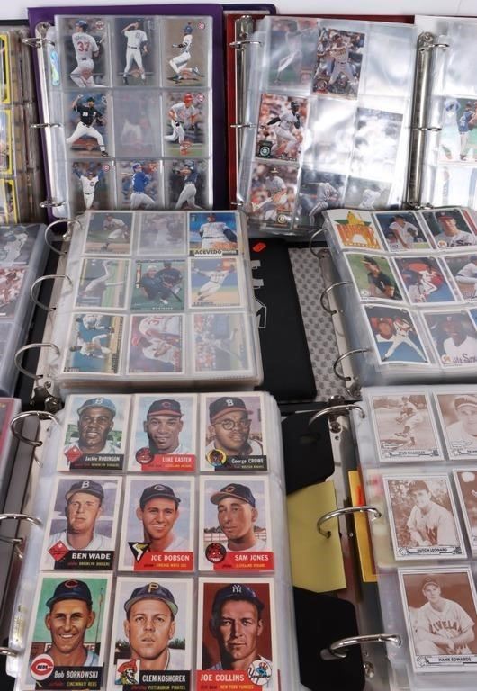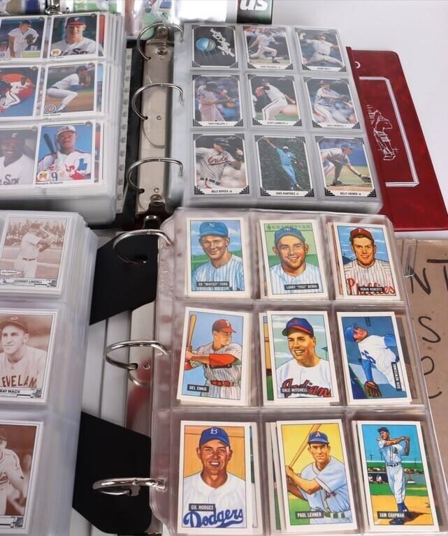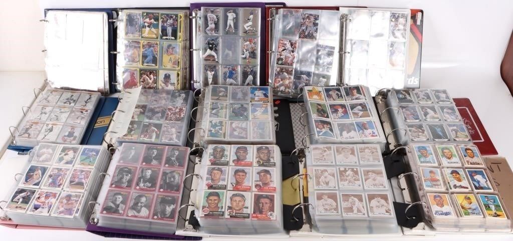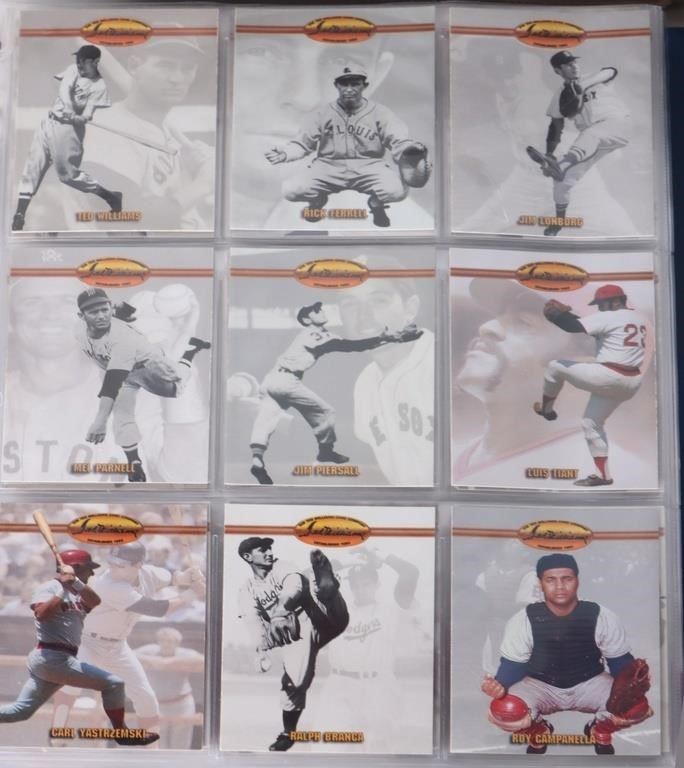1990' large collection of baseball cards, multi-brand and more to include one set of 1951 Bowman Re-prints, one 1943-1950 Re-print card sets, one 1953 Topps Re-print set, one 1994 Topps -1954 Archives (240/251), 1991 Leaf Studio set (263/264), 1992 Leaf Studio set (264/264), 1990 Leaf Set 1 (244/264), and 1990 set II (241/257), 1991 Leaf Series 1 complete set (264/264), one 1990 Upper Deck set (673/800), 1995-1997 Collector's choice baseball card starter sets,one 1995 Donruss baseball set (118/300) and more, one 1996 Donruss set (136/220) and more, one 1933 Ted Williams Complete set and 1993 Ted Williams POGS complete pop cards, one 1996-1995 Leaf Series starter sets with some complete, one 1994 Donrus series I (82/330), one 1997 Donruss Series II (113/330) and more, one 1997 Leaf Series I (45/200), one 1997 Leaf Series II partial sets, 1987-1992 Classic Baseball cards starter sets binder (~15 starter sets), and one 1993-1994 Classic baseball starter sets,
