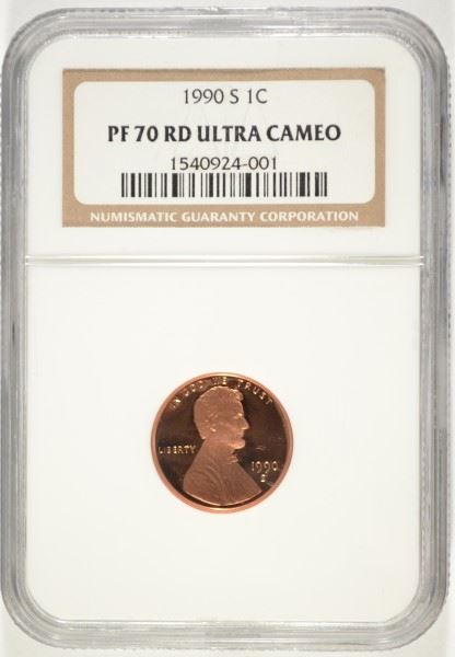 1990-S LINCOLN CENT, NGC PROOF 70 RED! ULTRA CAMEO! RARE! POPULATION OF ONLY 7!