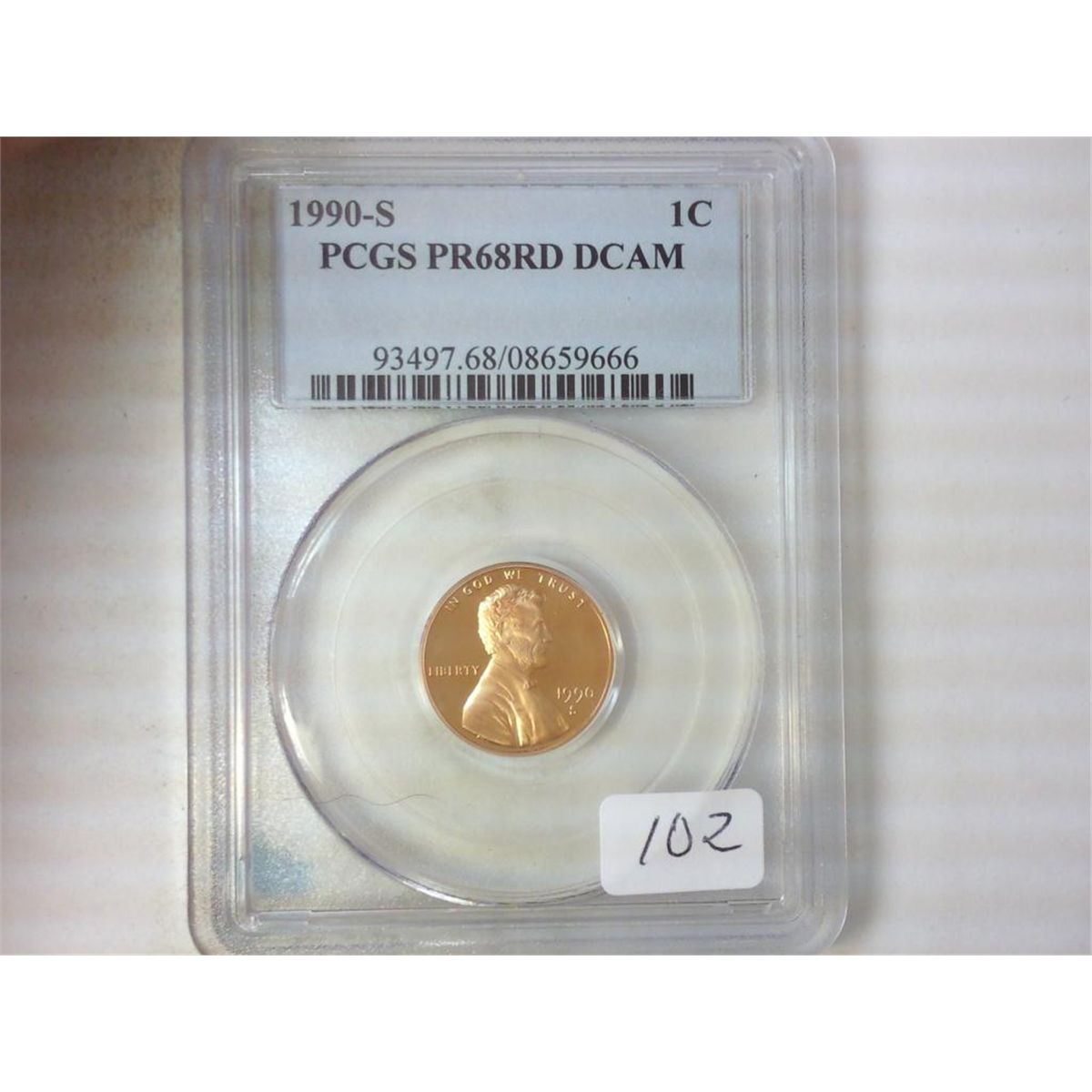 1990-S LINCOLN CENT PCGS PR68RD DCAM